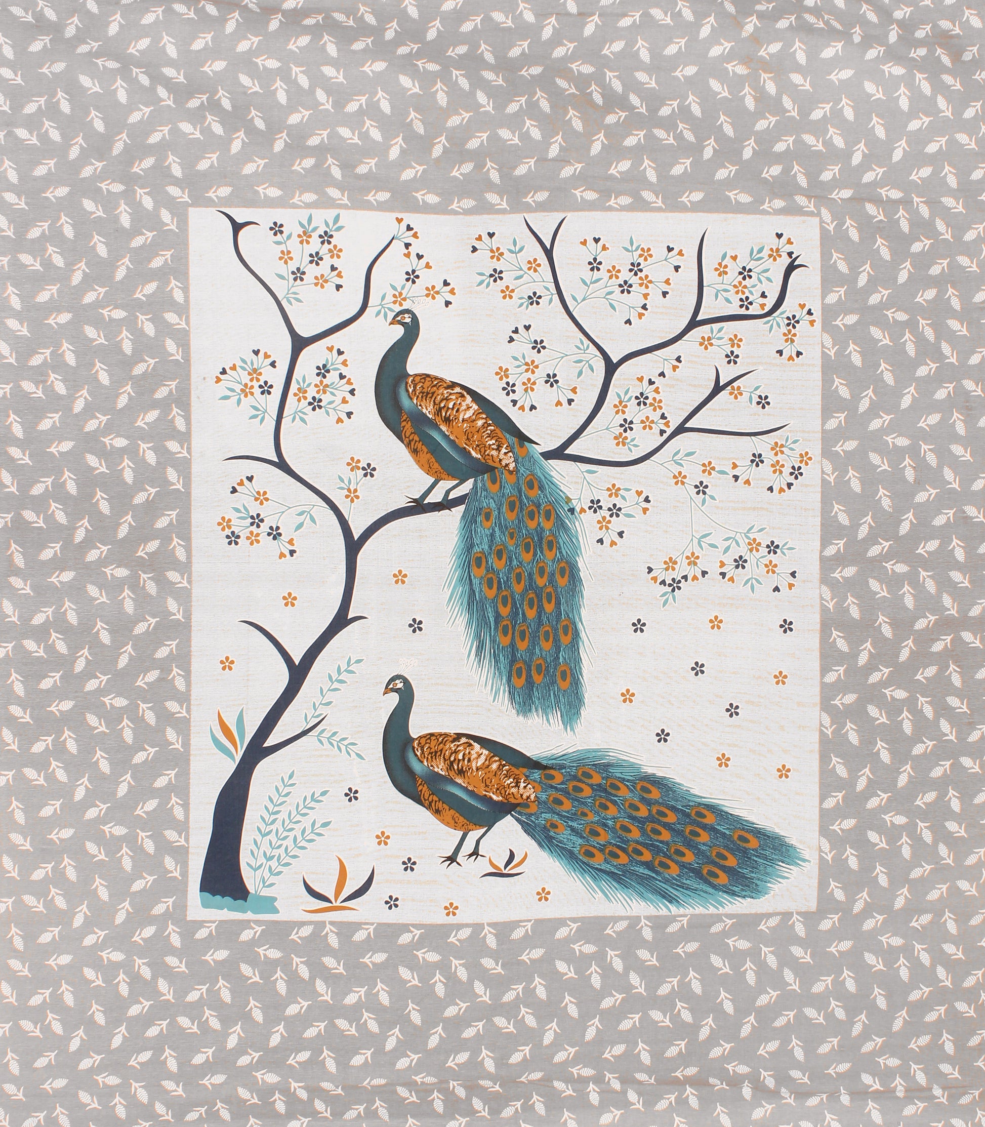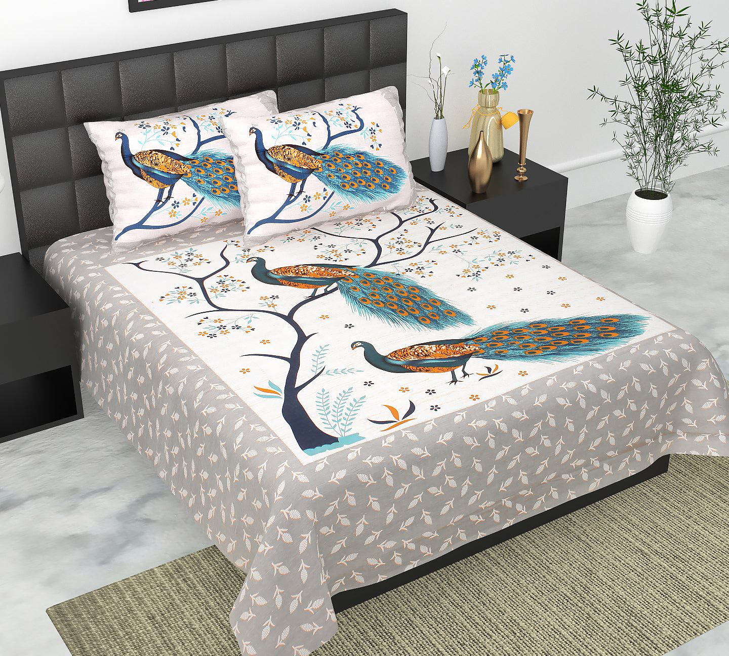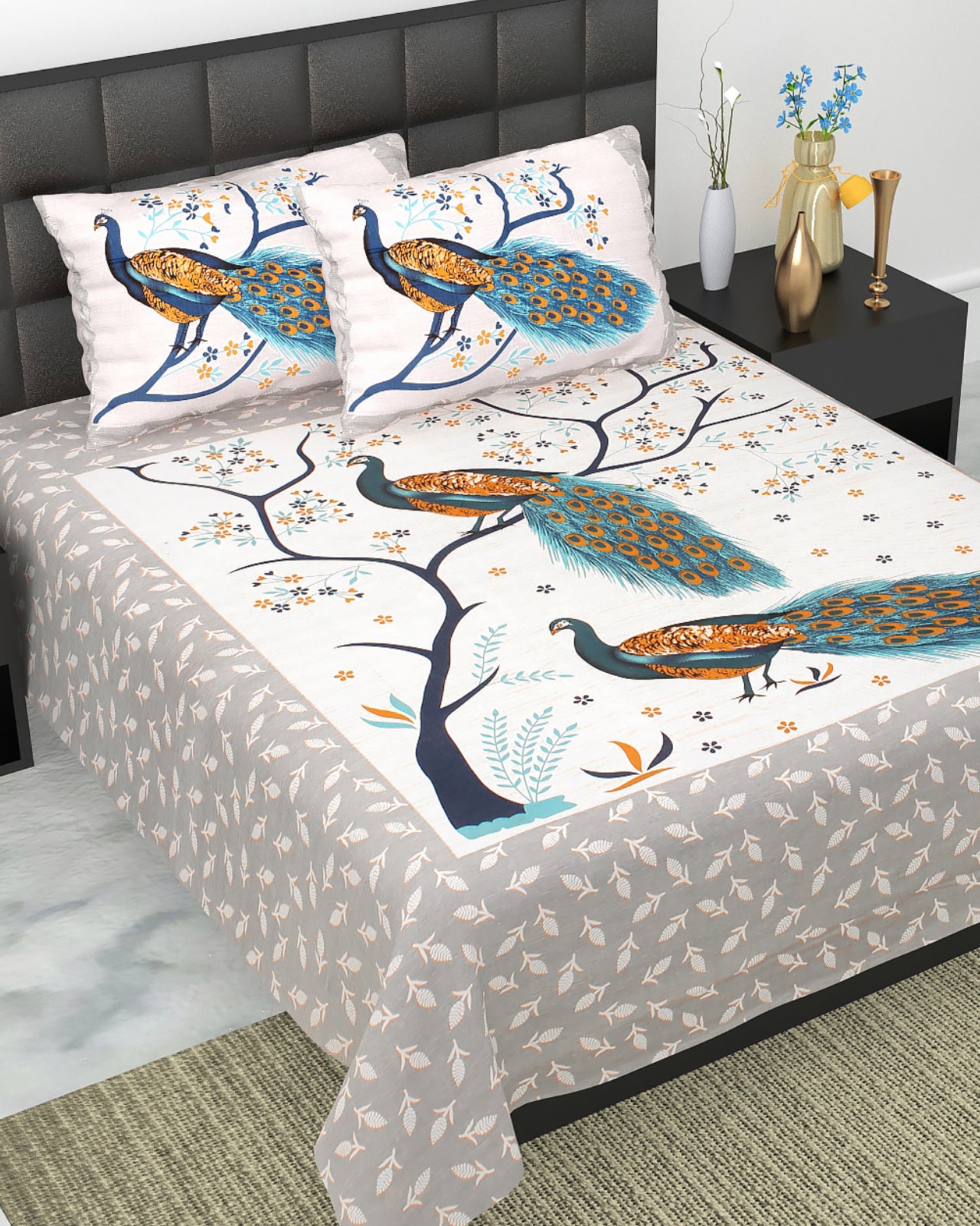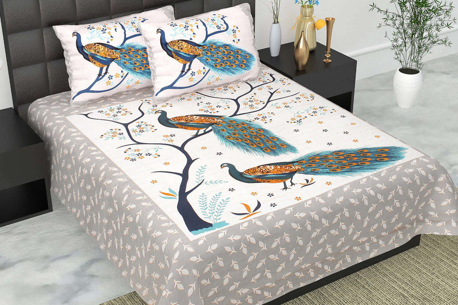 Jaipuri 100% Cotton Peacock Print Double Size Bedsheet ( 280 TC )