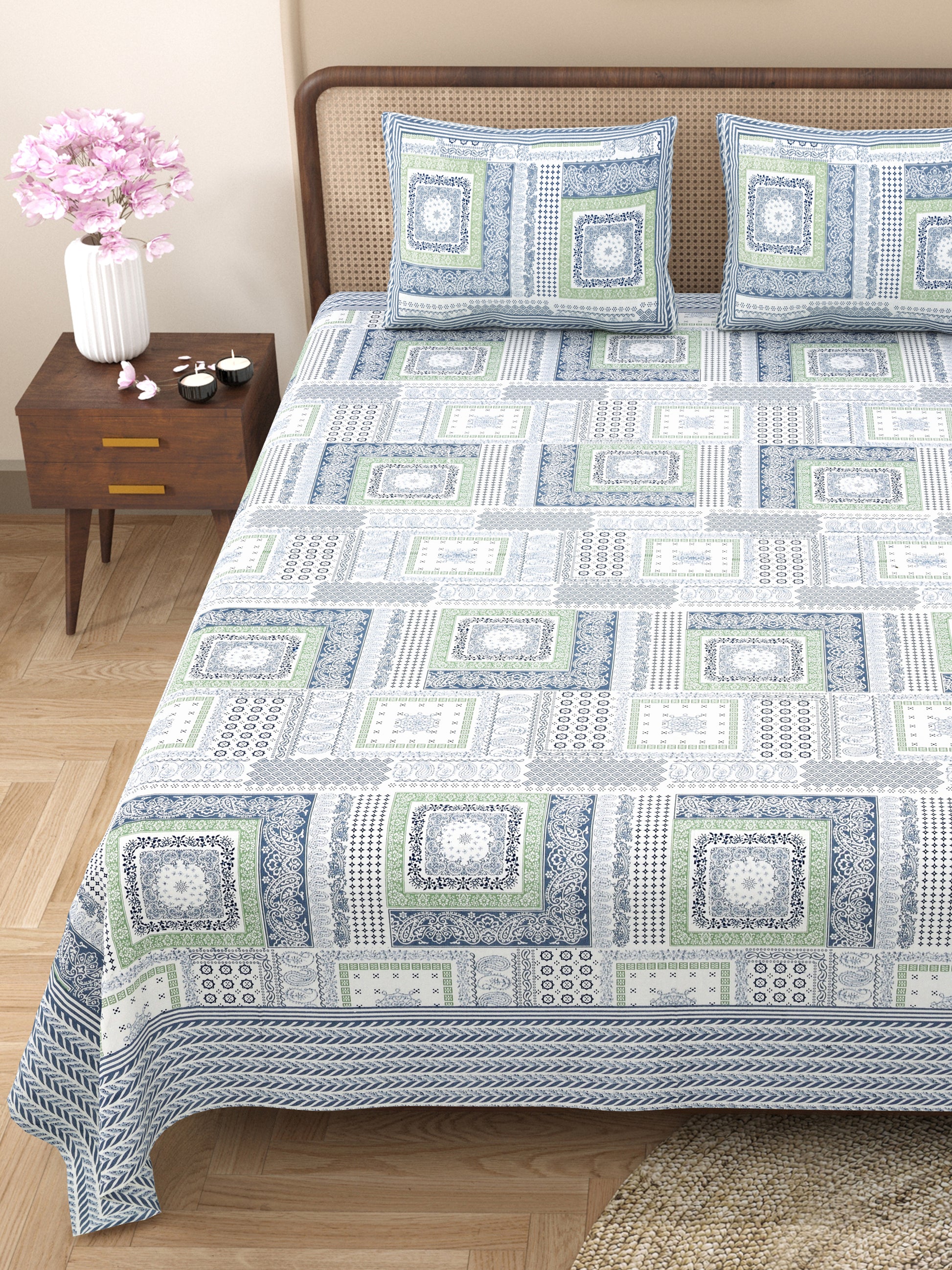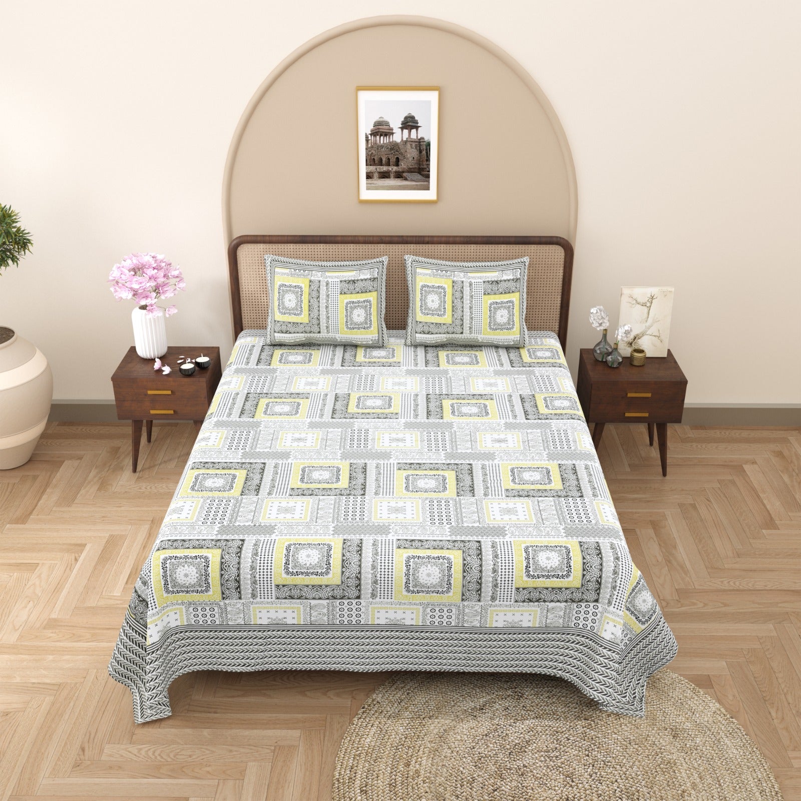 100% Cotton King Size Bedsheet with 2 Pillow Cover Set