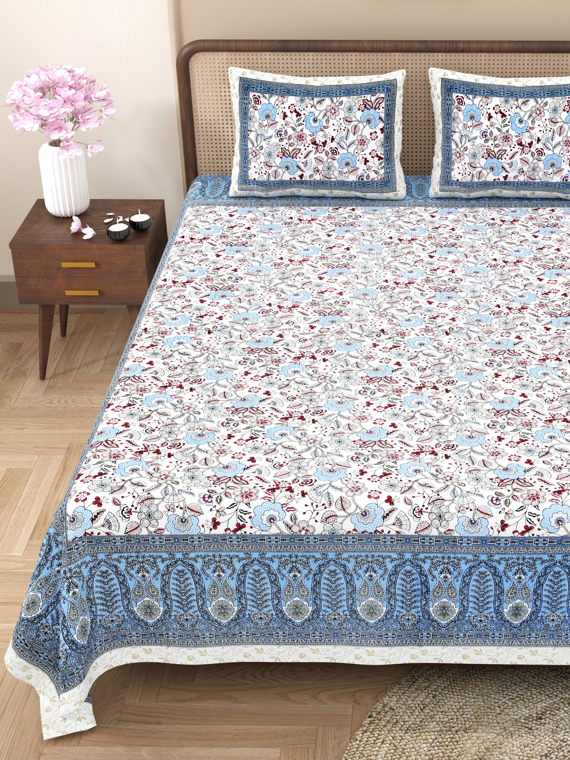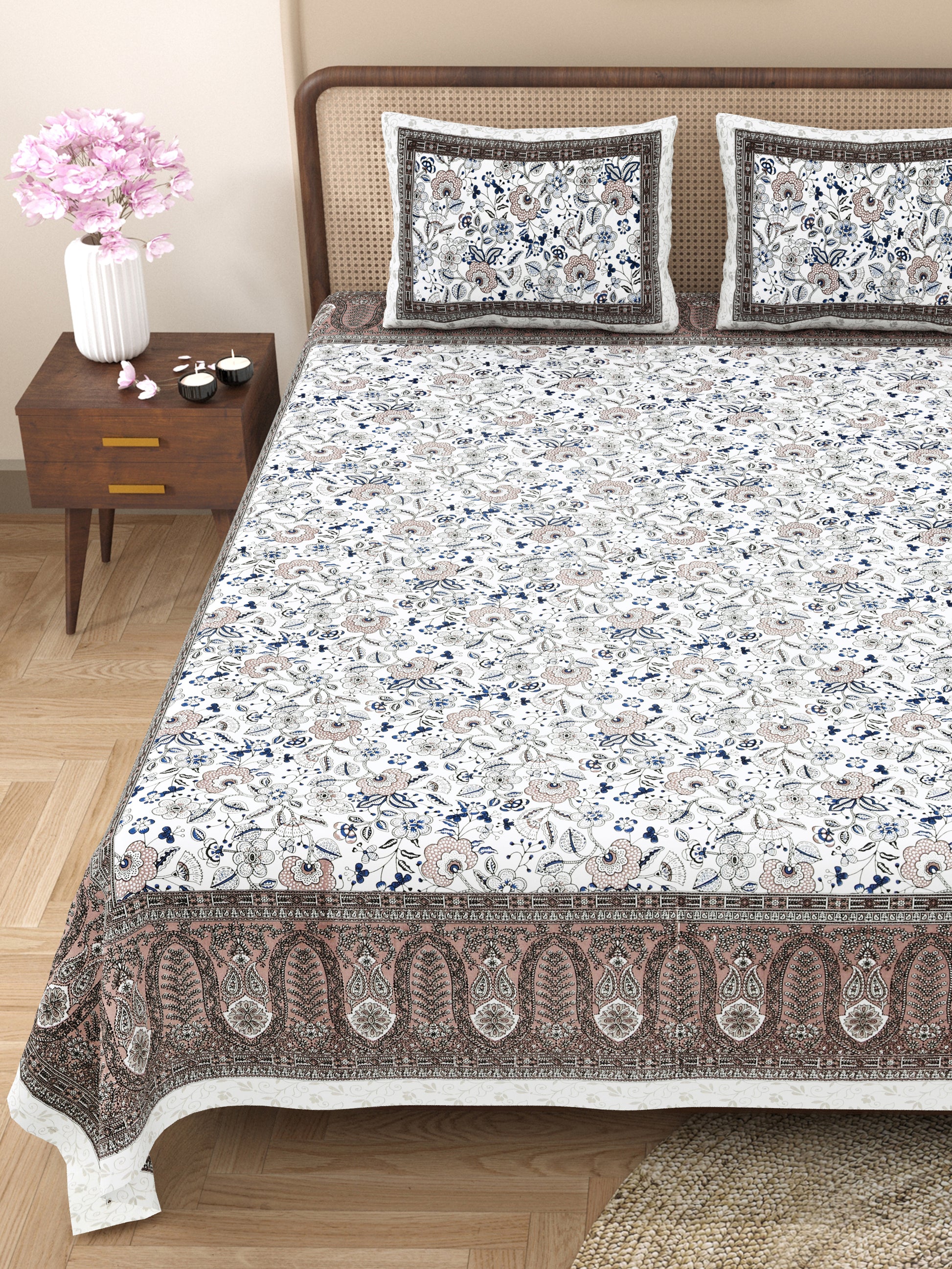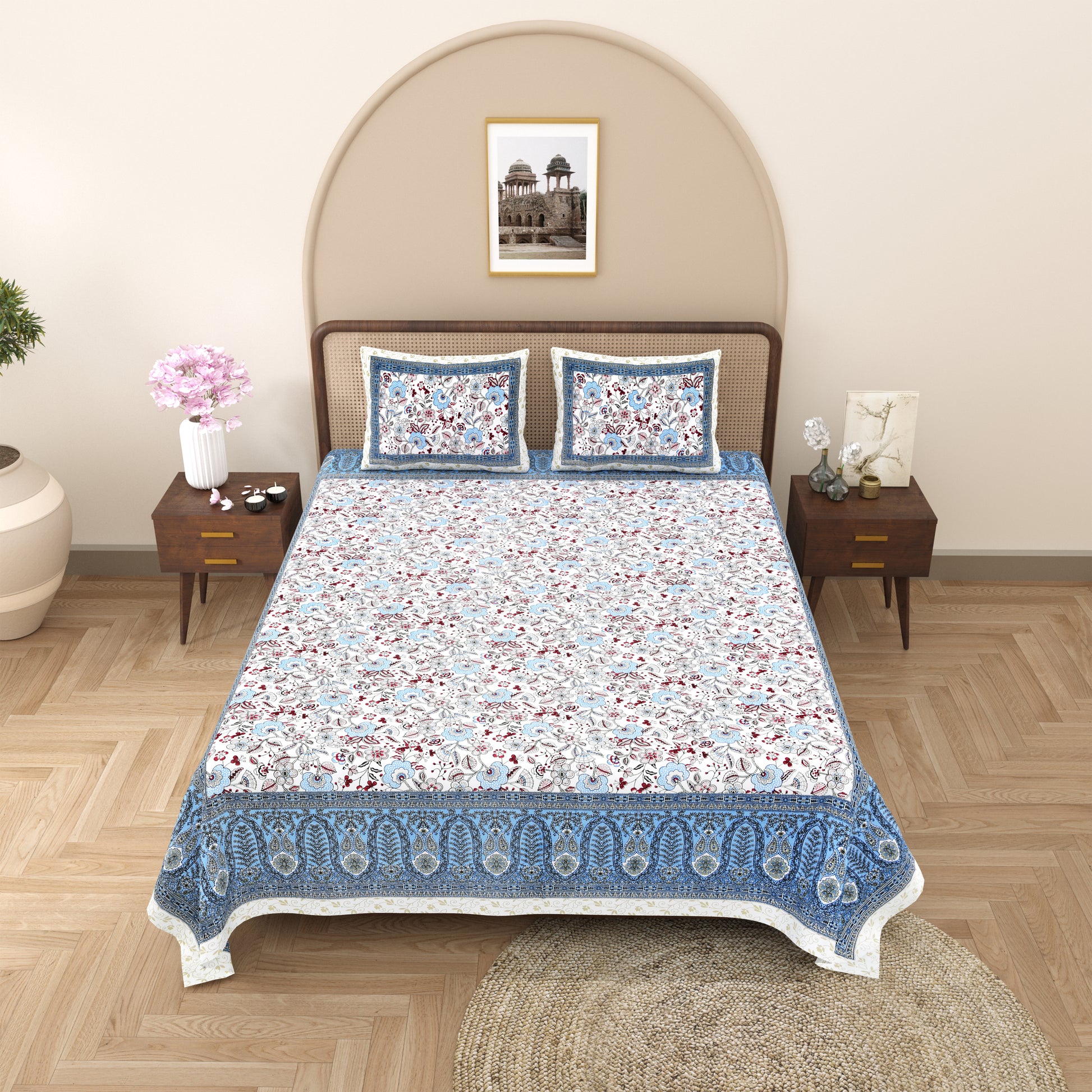 100% Cotton King Size Bedsheet with 2 Pillow Cover Set