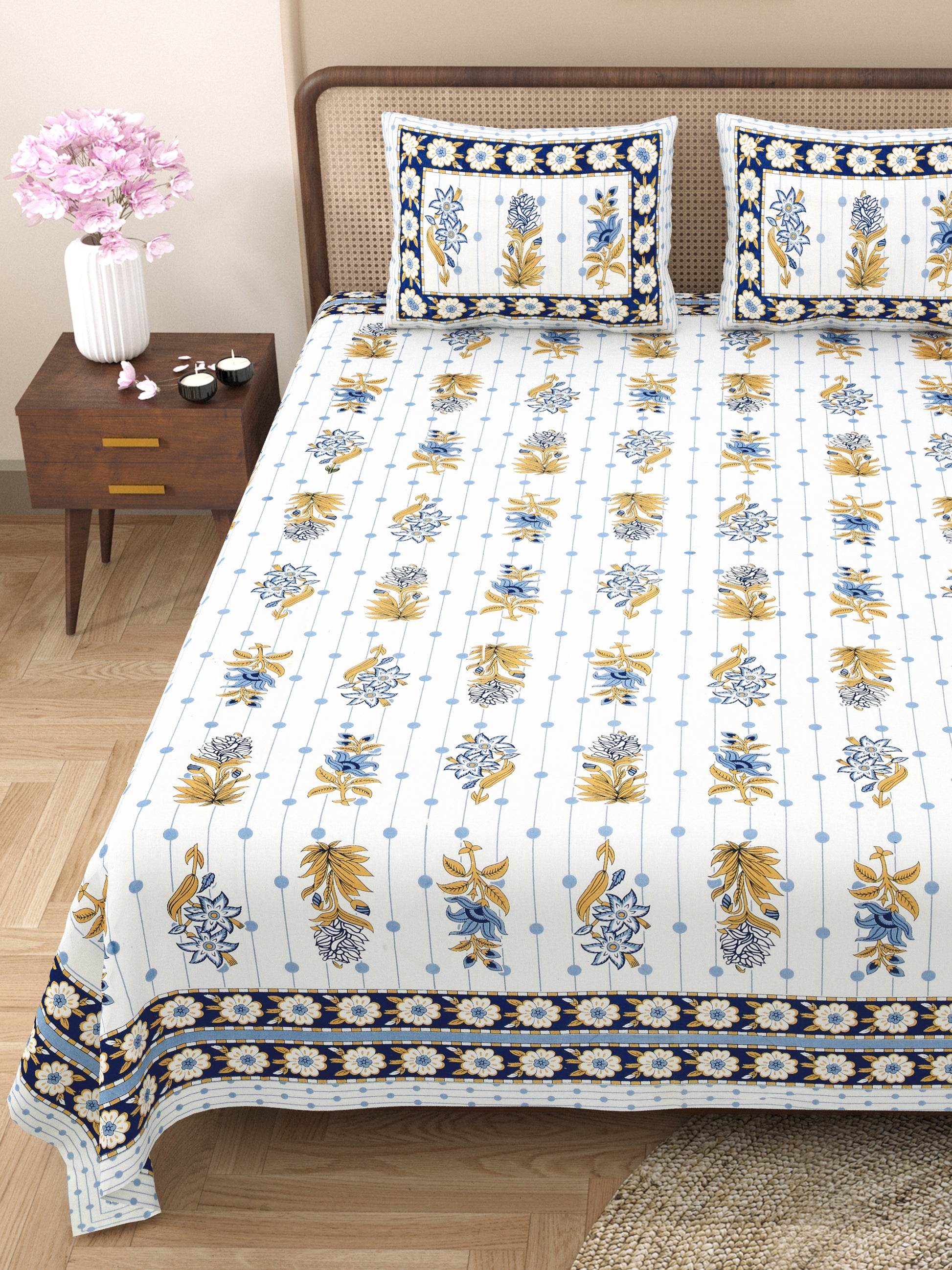 100% Cotton King Size Bedsheet with 2 Pillow Cover Set