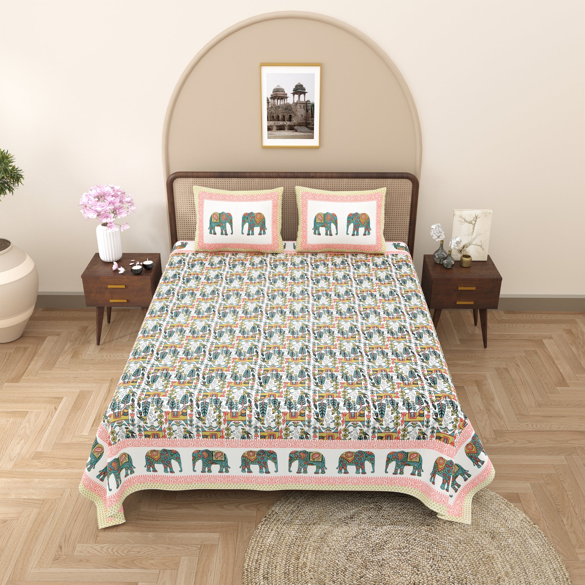 100% Cotton King Size Bedsheet with 2 Pillow Cover