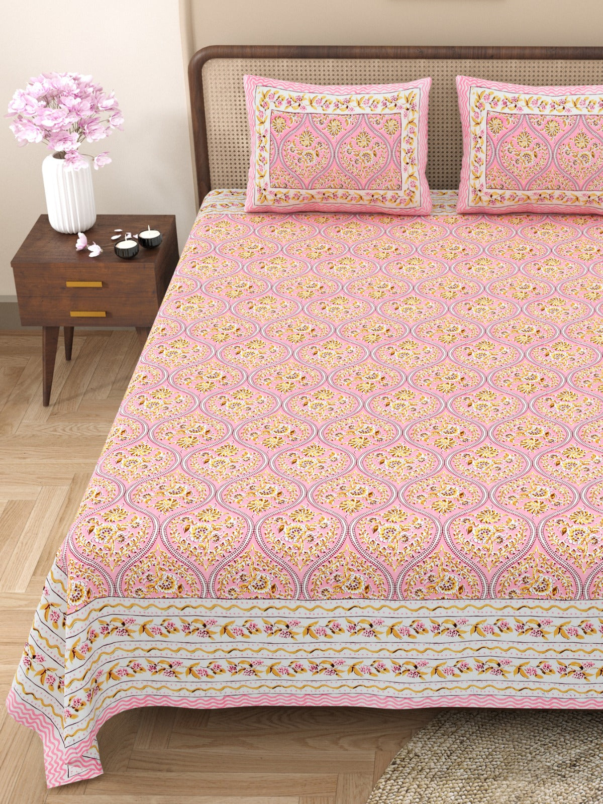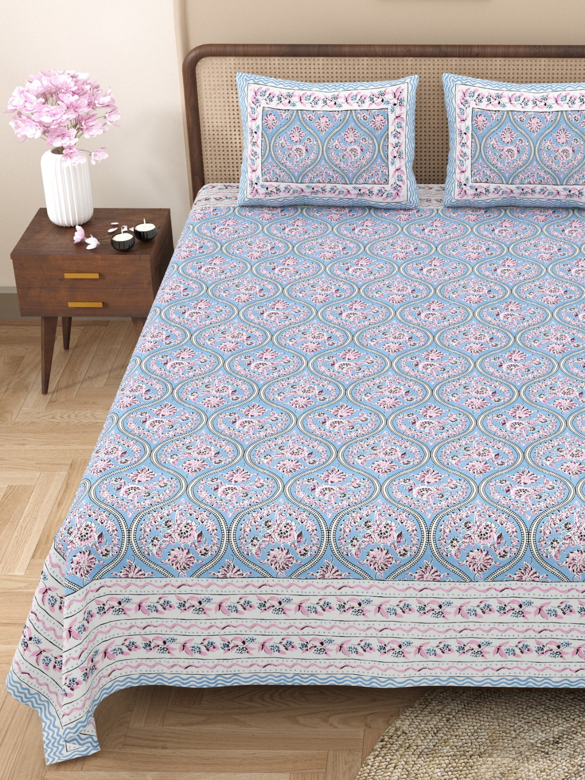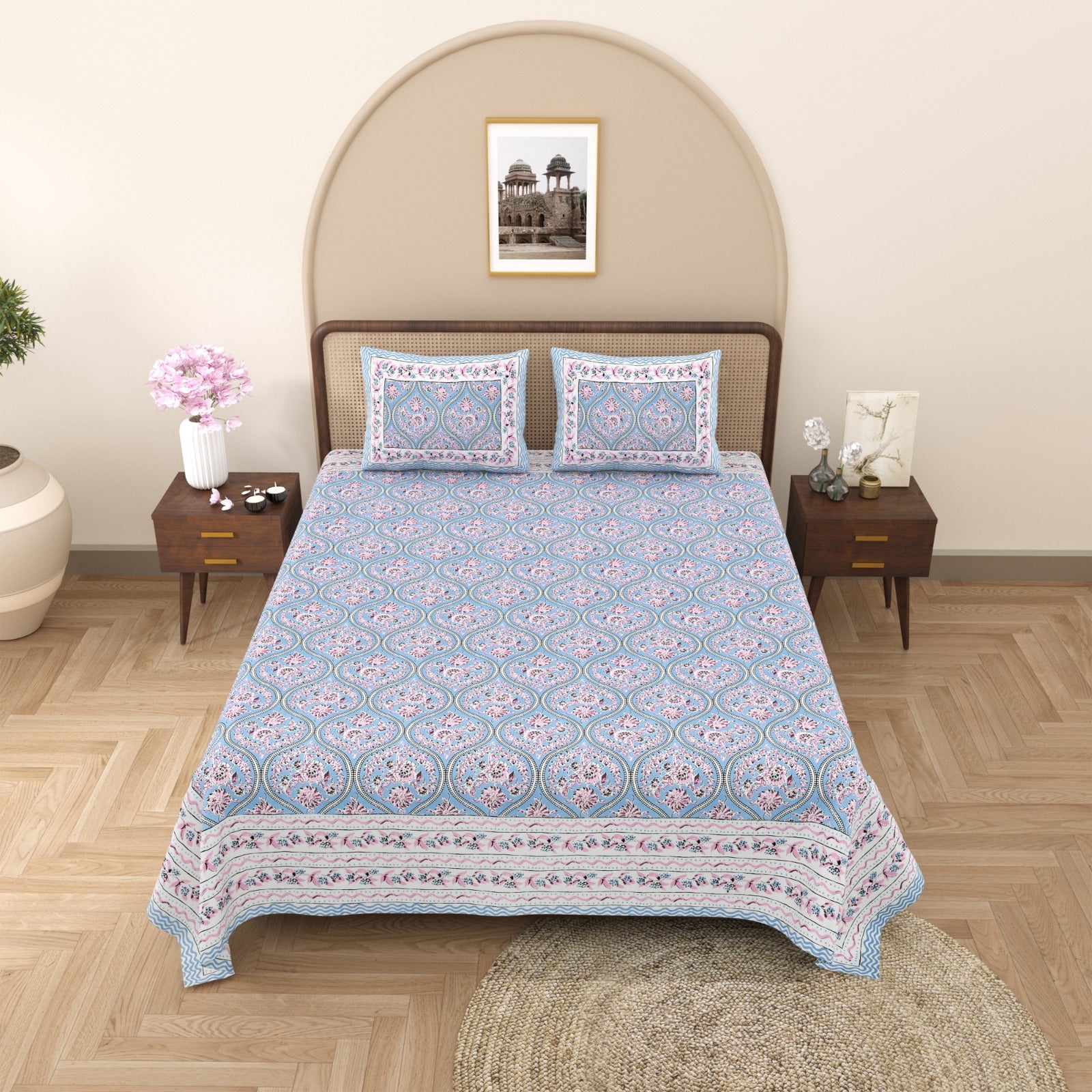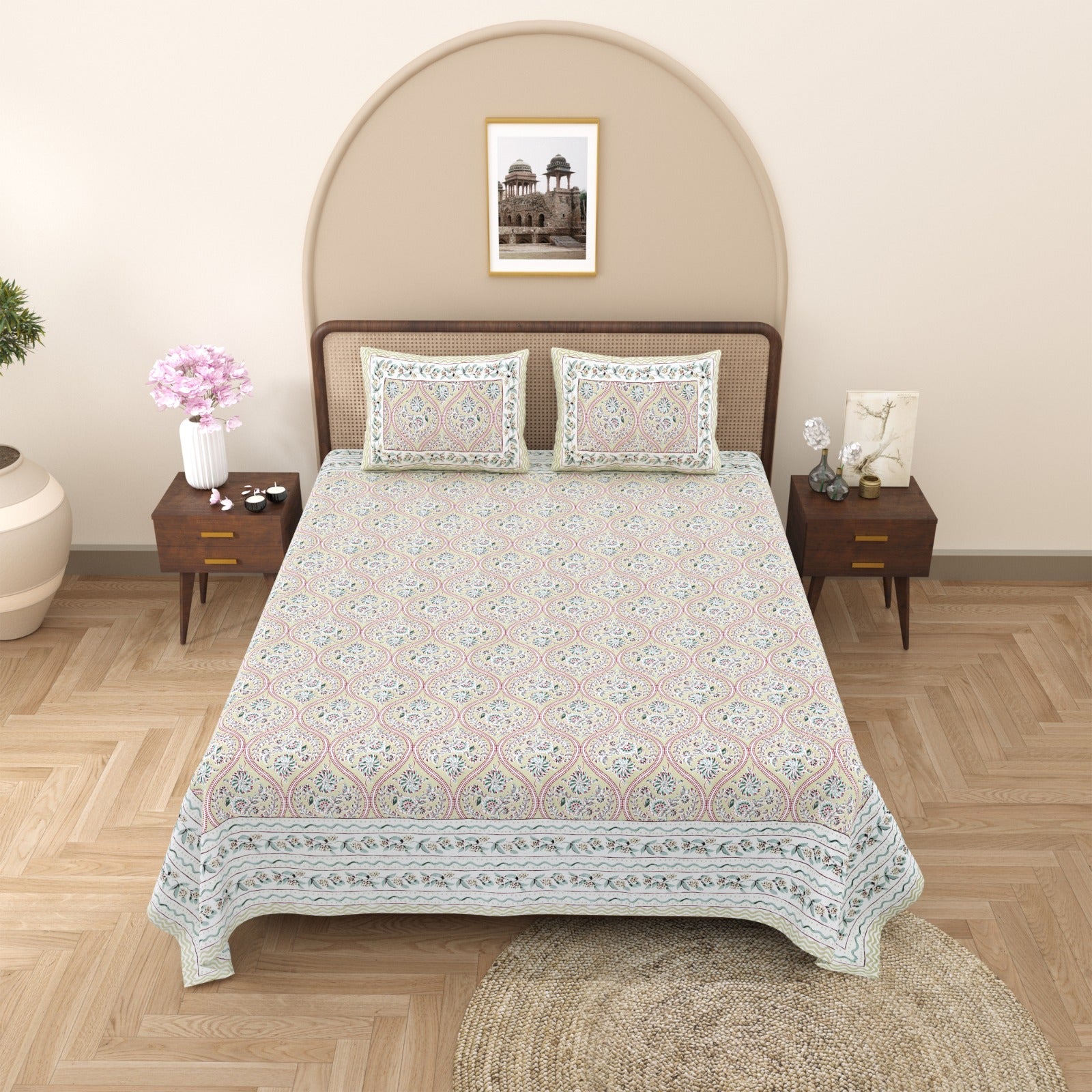 100% Cotton King Size Bedsheet with 2 Pillow Cover Set