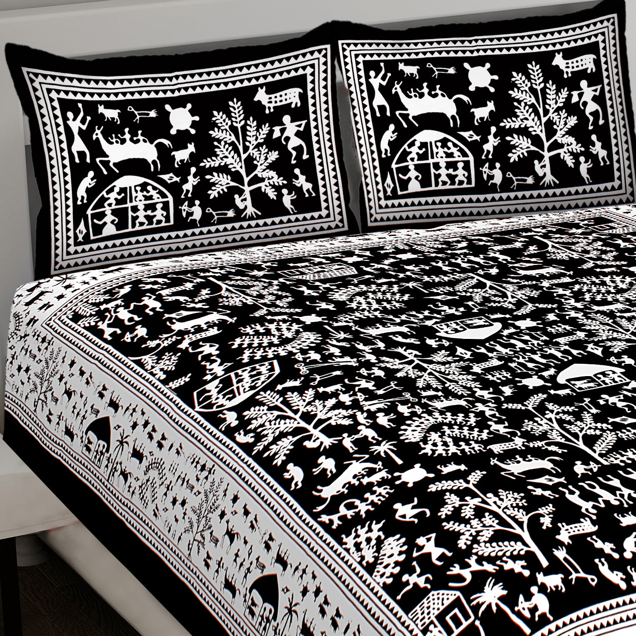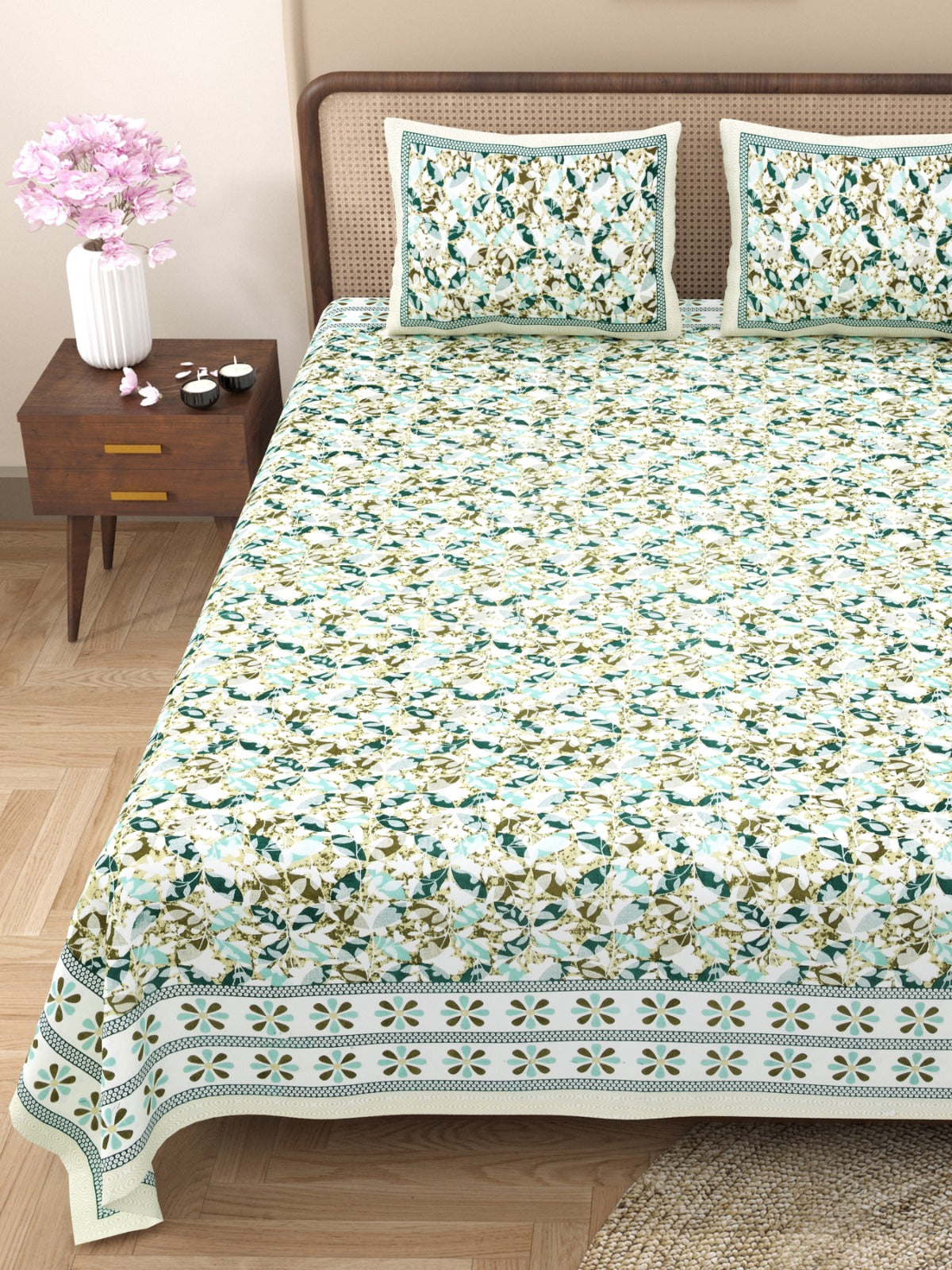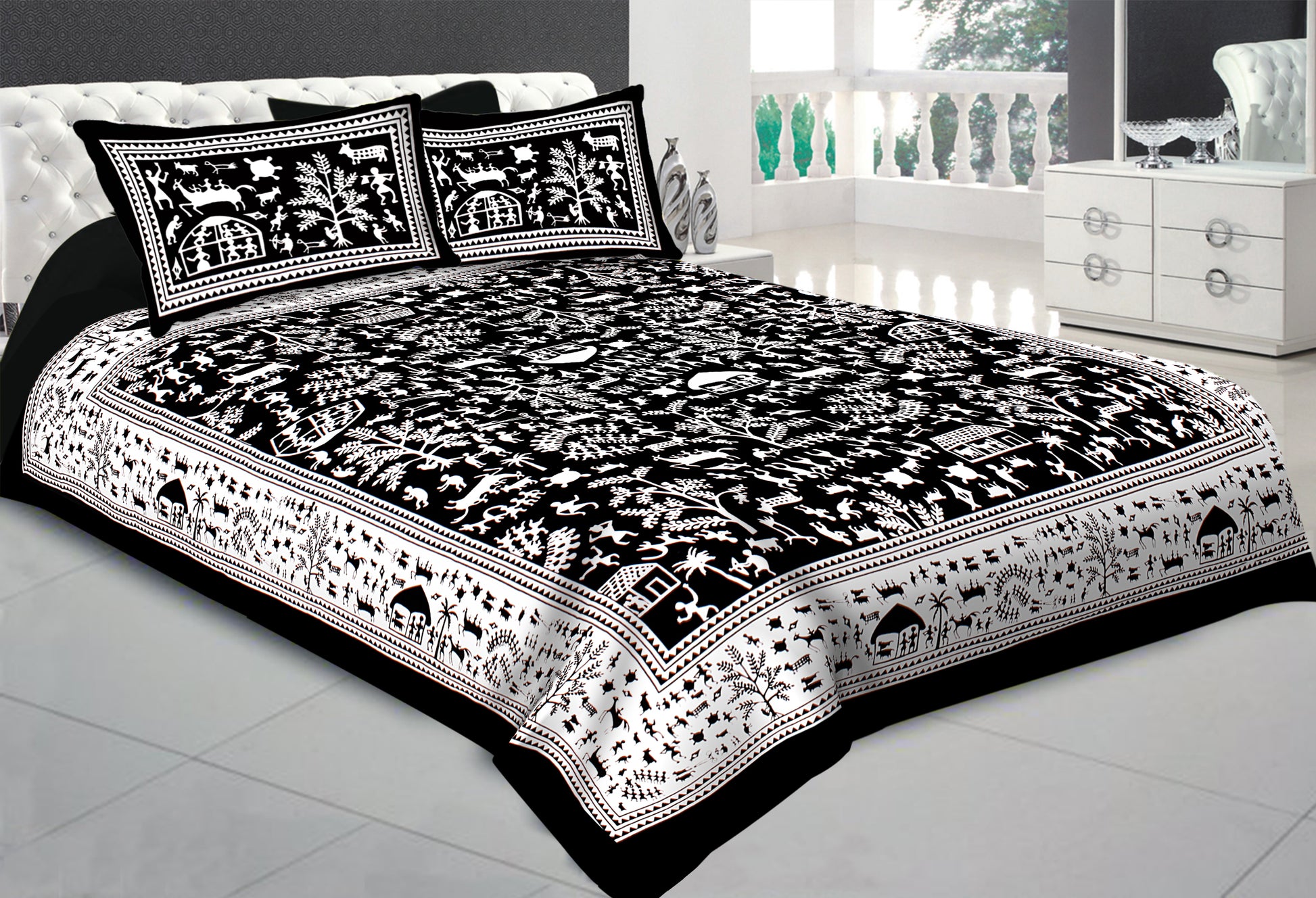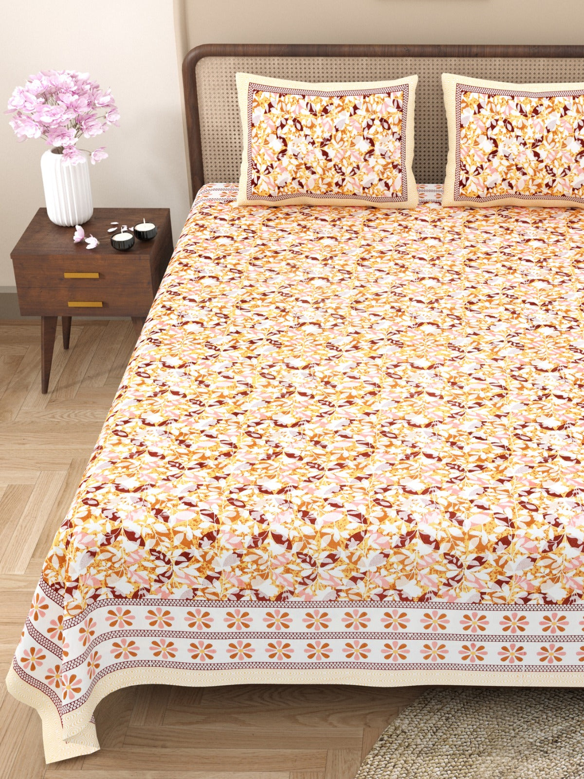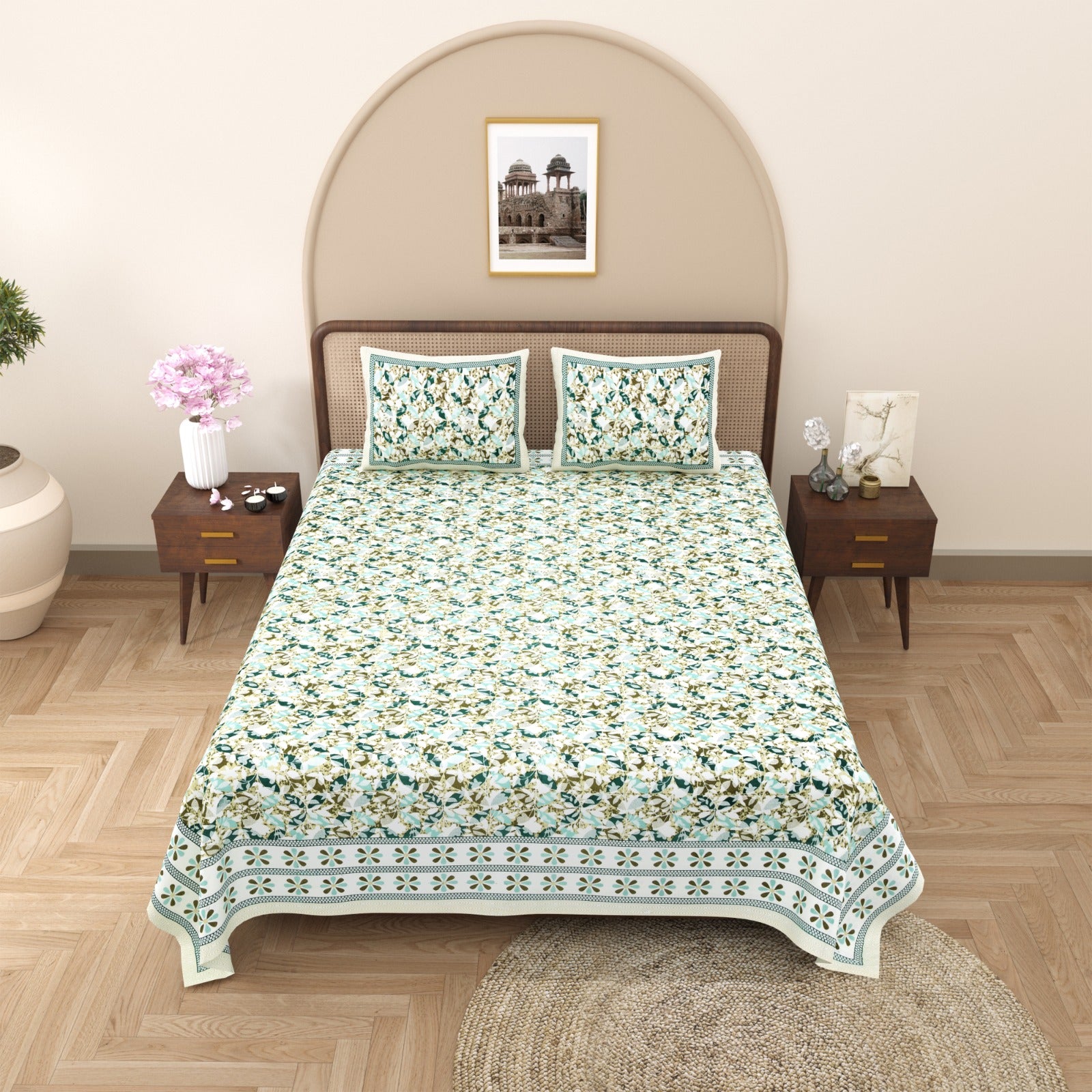 Jaipuri Bedsheet 100% Cotton Rajasthani Traditional Super King Size Bedsheet with 2 Pillow Cover 100*108