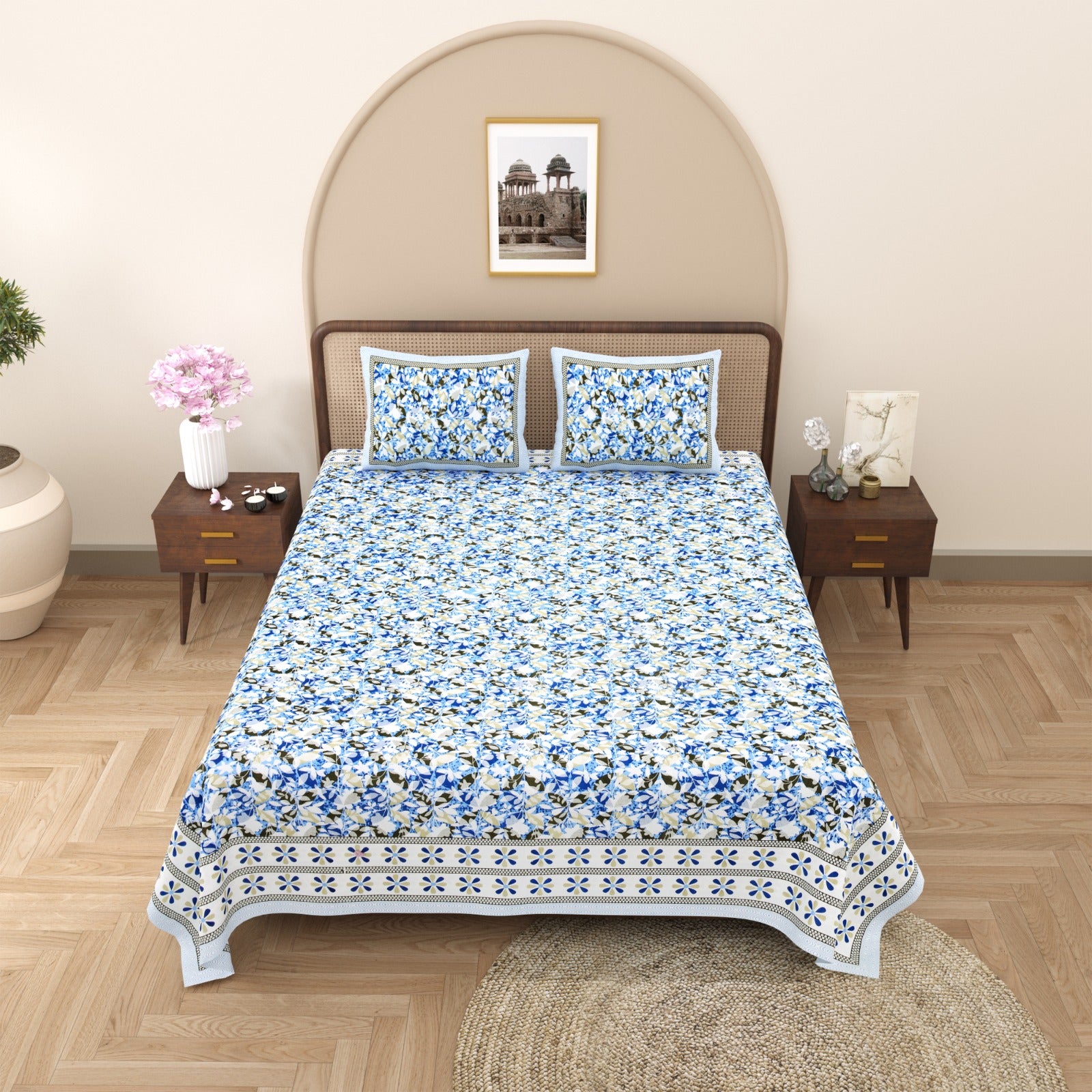 Jaipuri 100% Cotton Double Size Bedsheet ( Sky-Blue 280 TC)