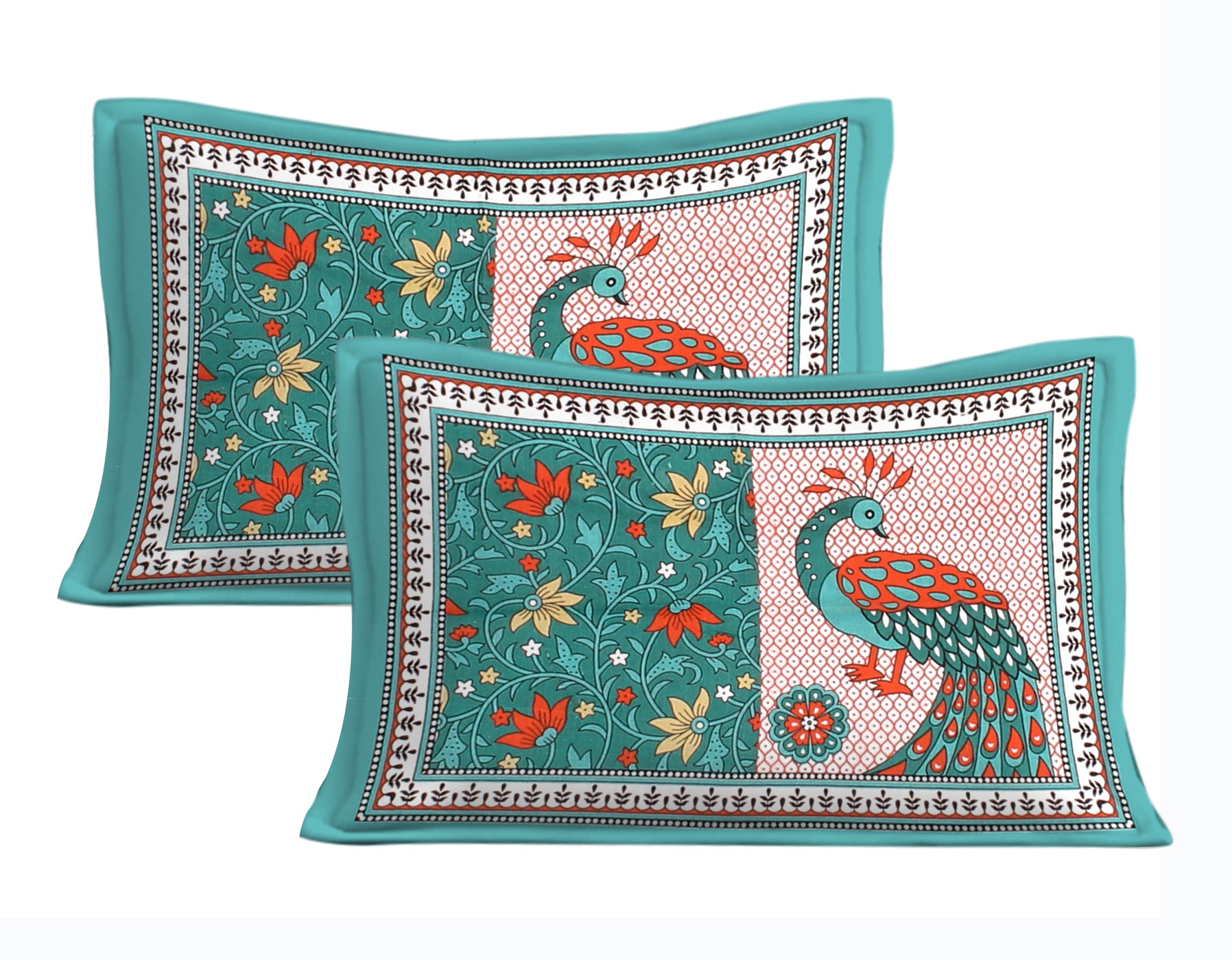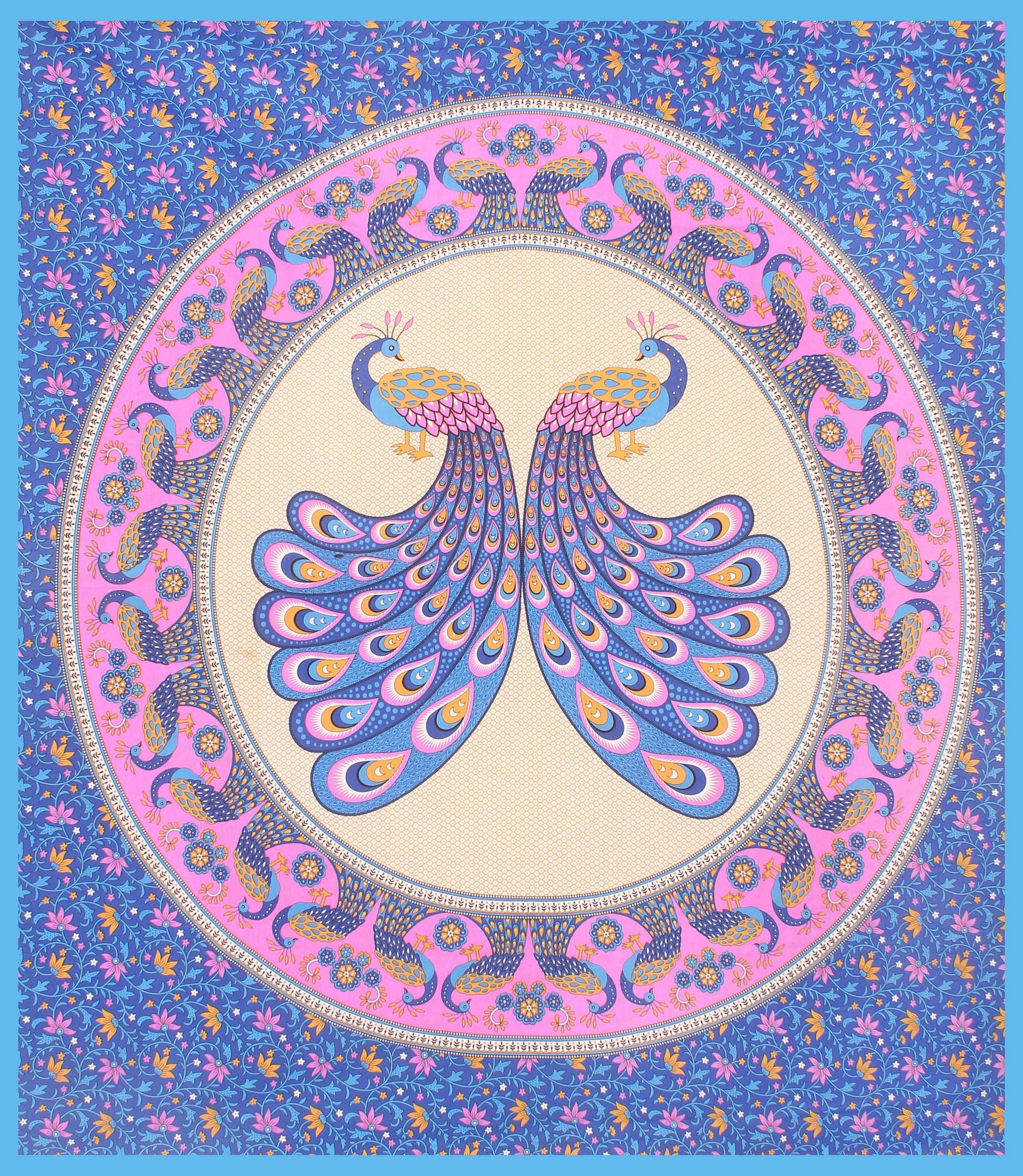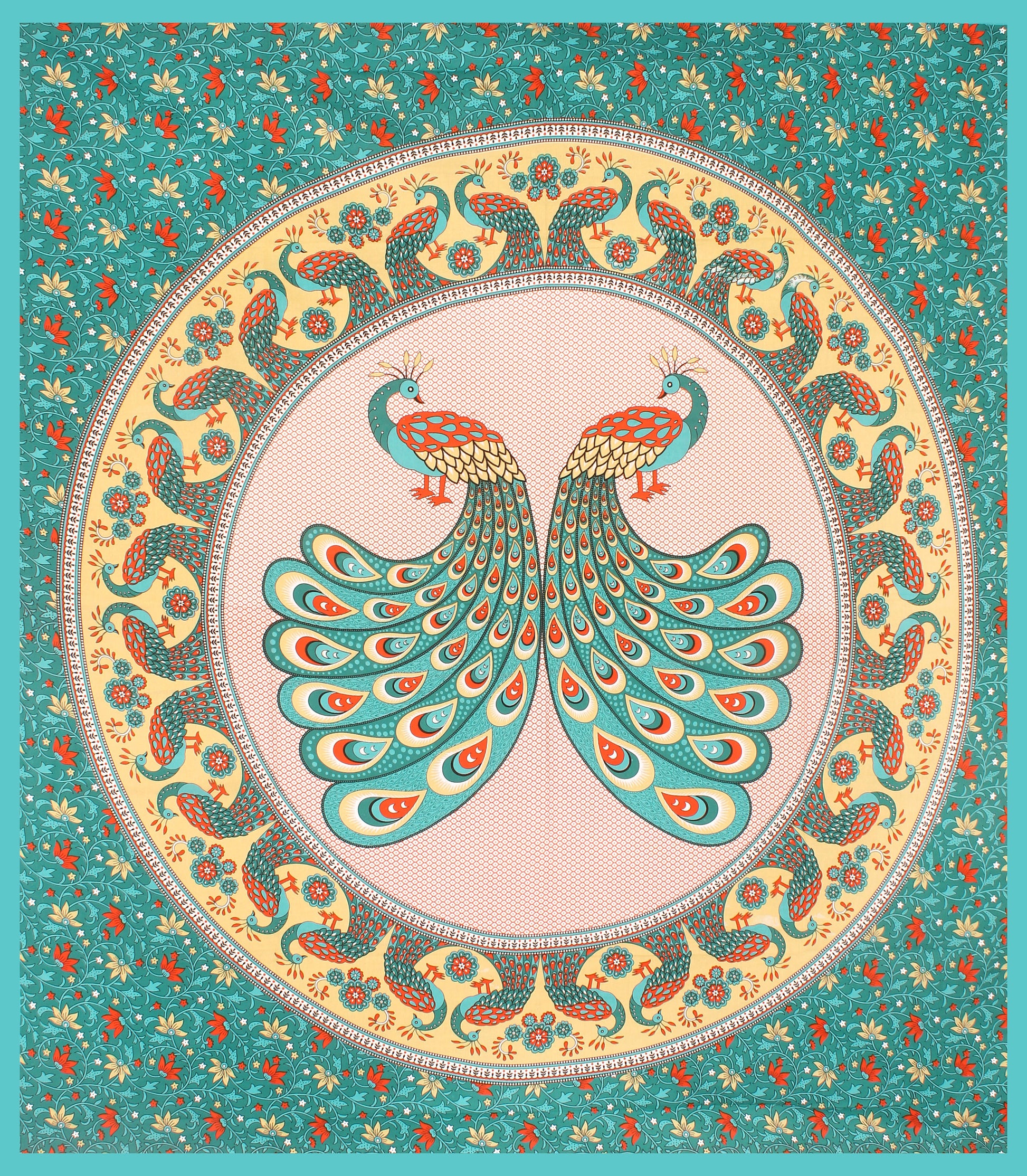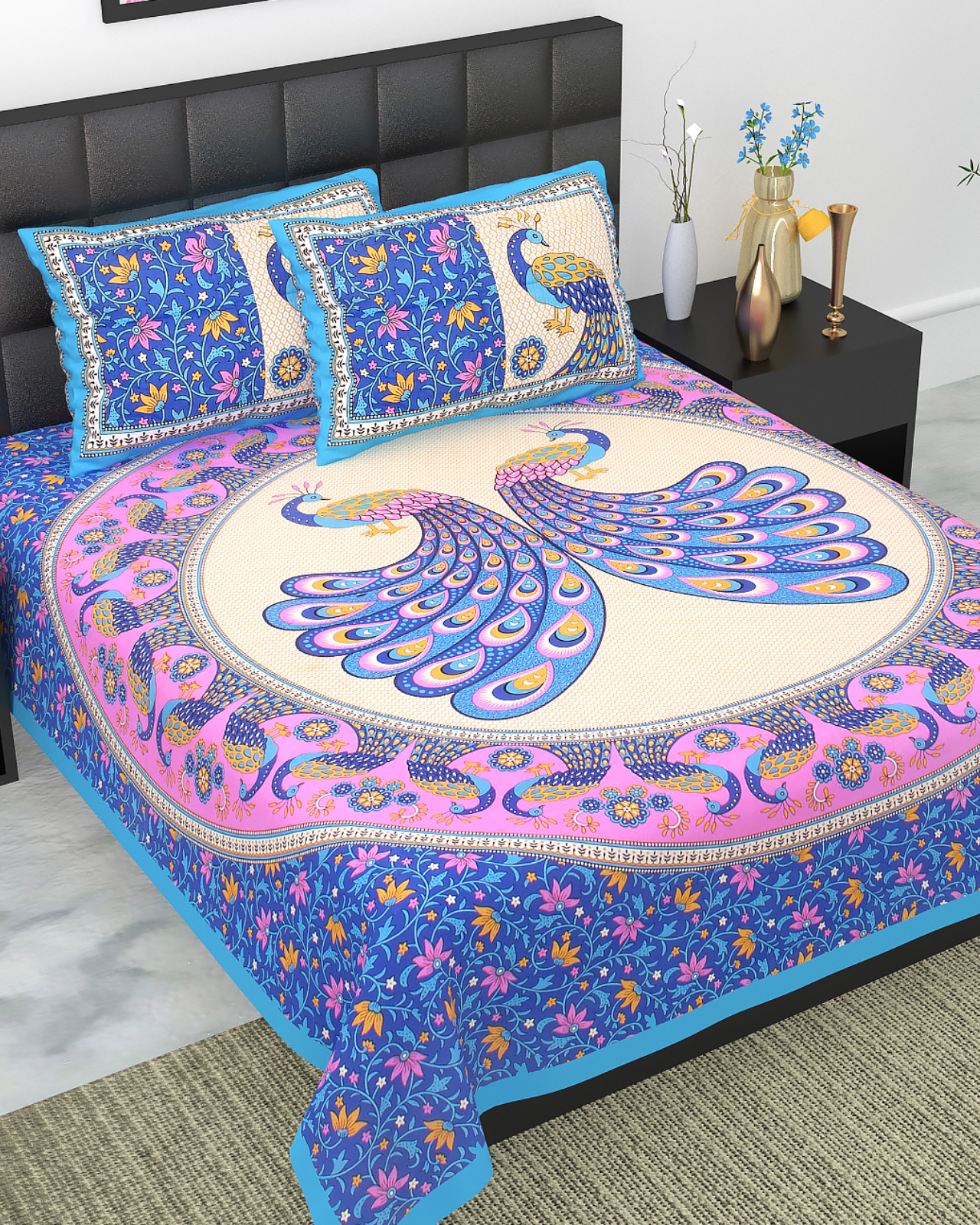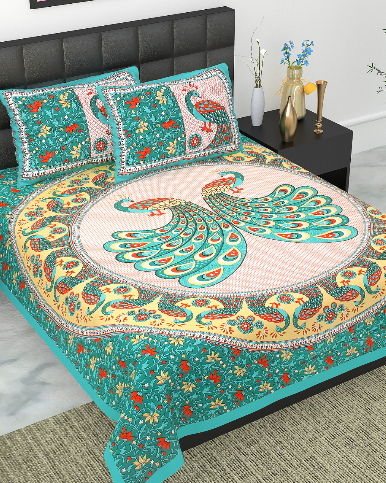 Jaipuri 100% Cotton Peacock Print Double Size Bedsheet ( 280 TC )