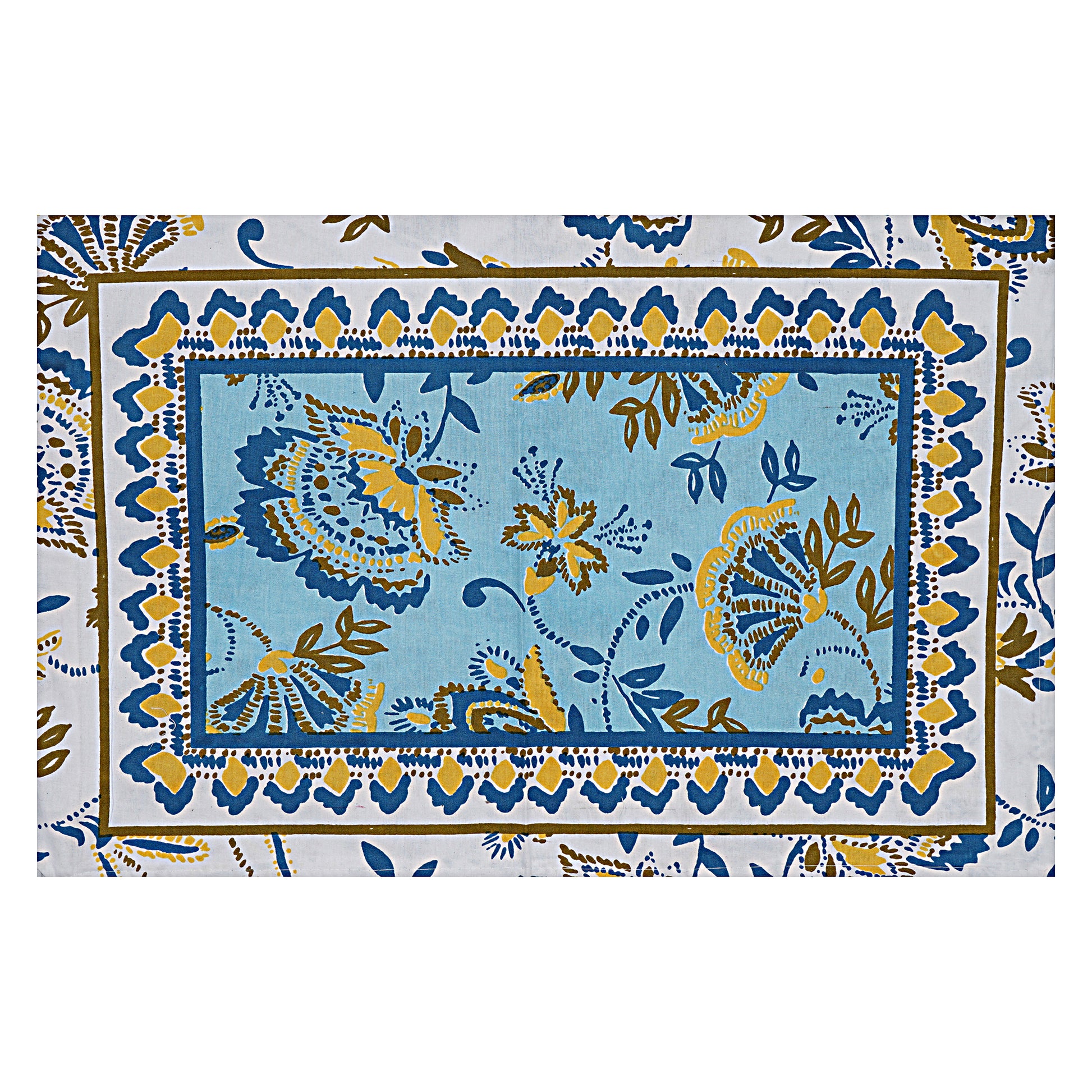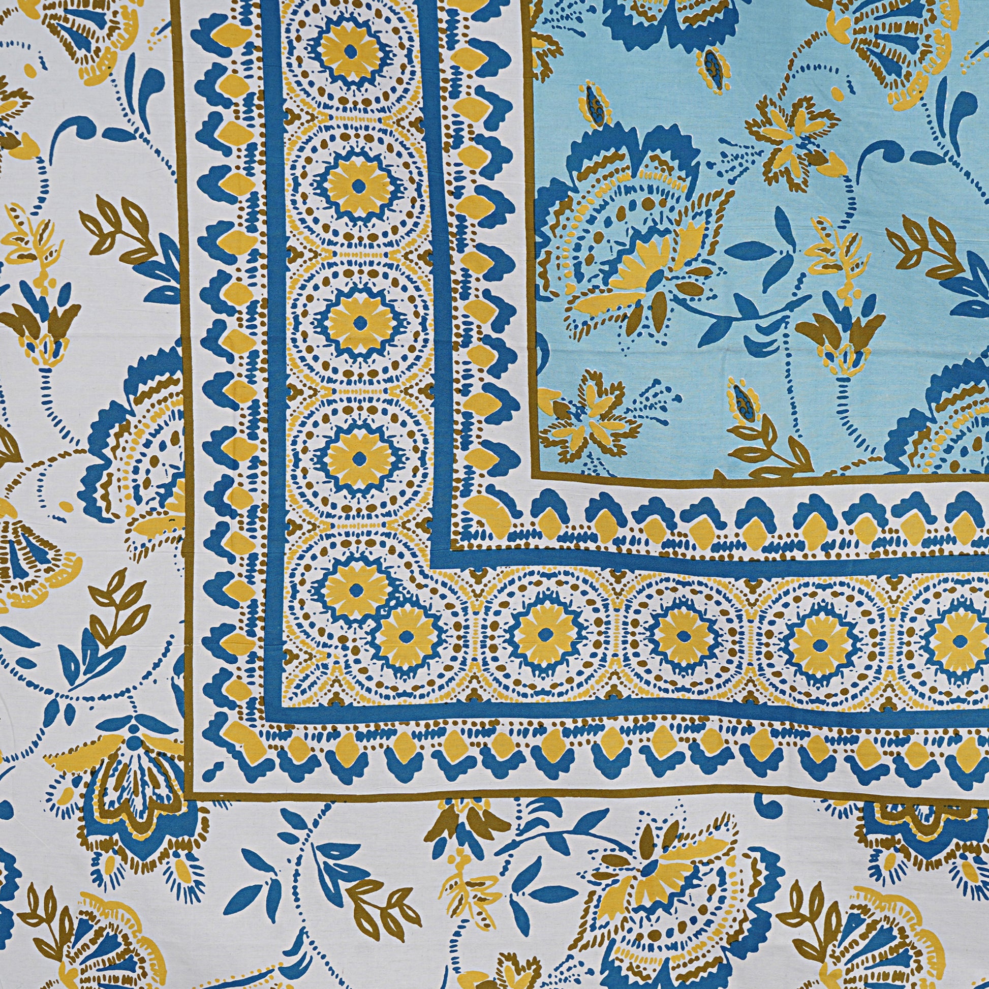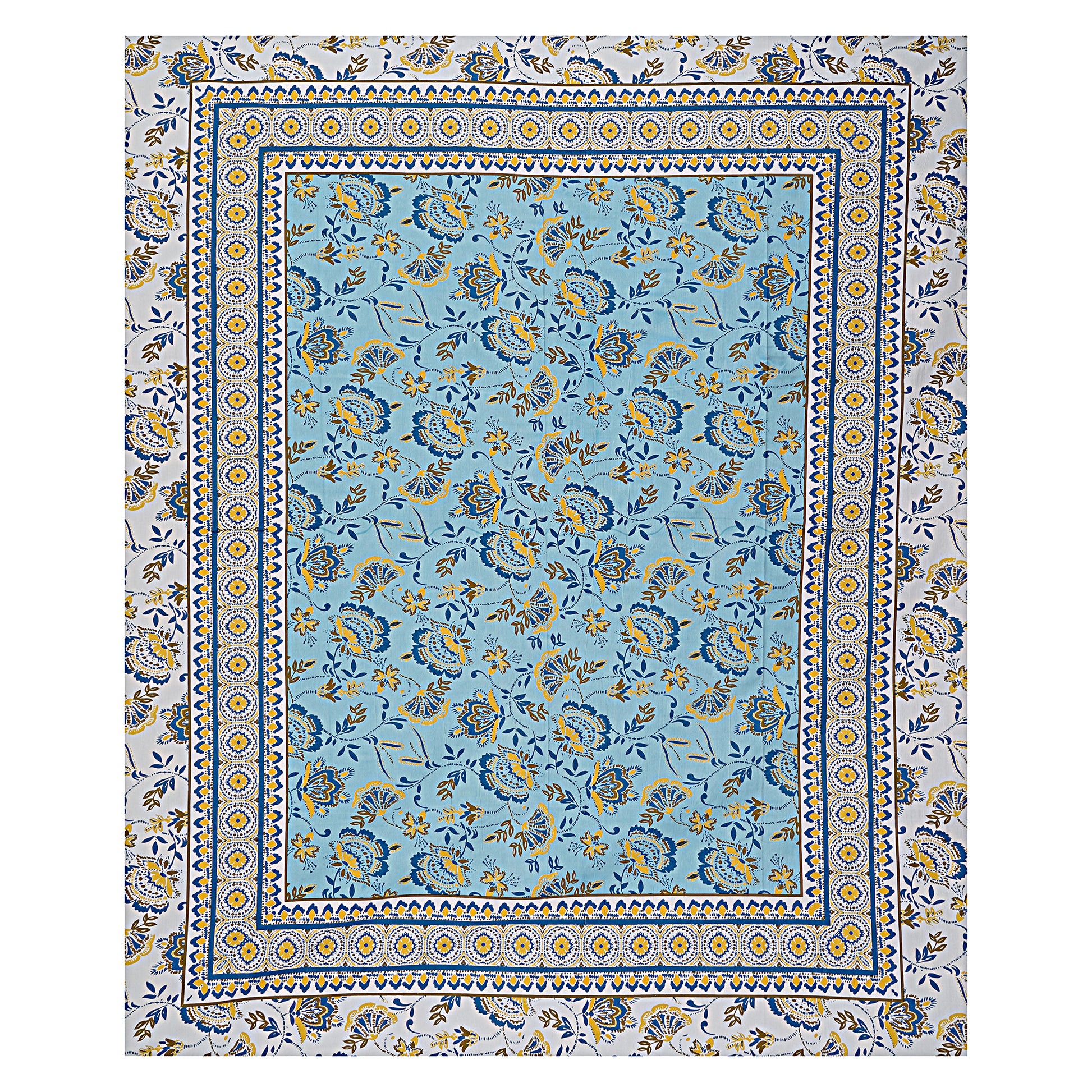 Jaipuri 100% Cotton Double Size Bedsheet ( Sky-Blue 280 TC)