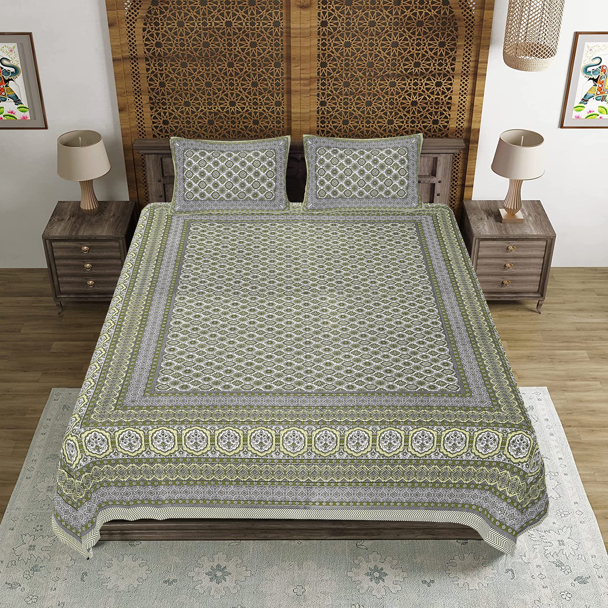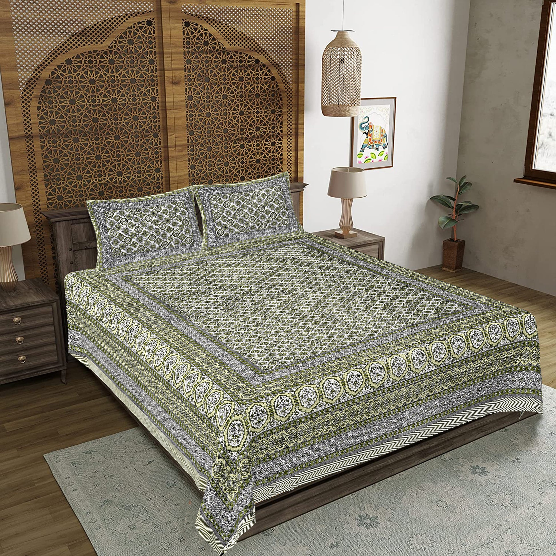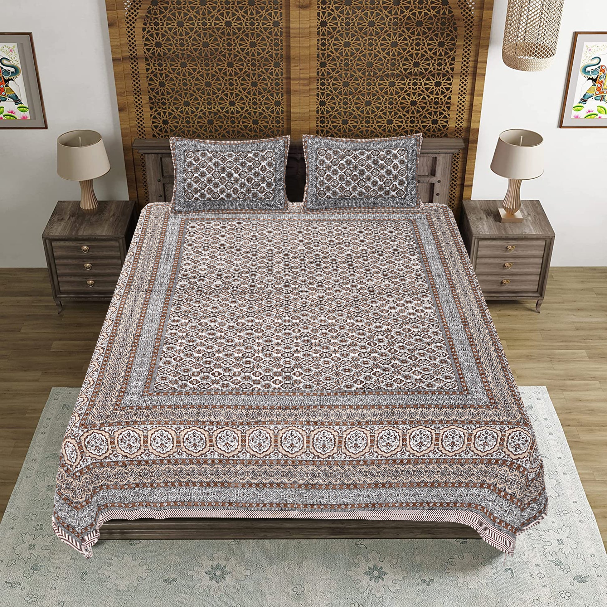 Jaipuri Bedsheet 100% Cotton Rajasthani Traditional Super King Size Bedsheet with 2 Pillow Cover 100*108