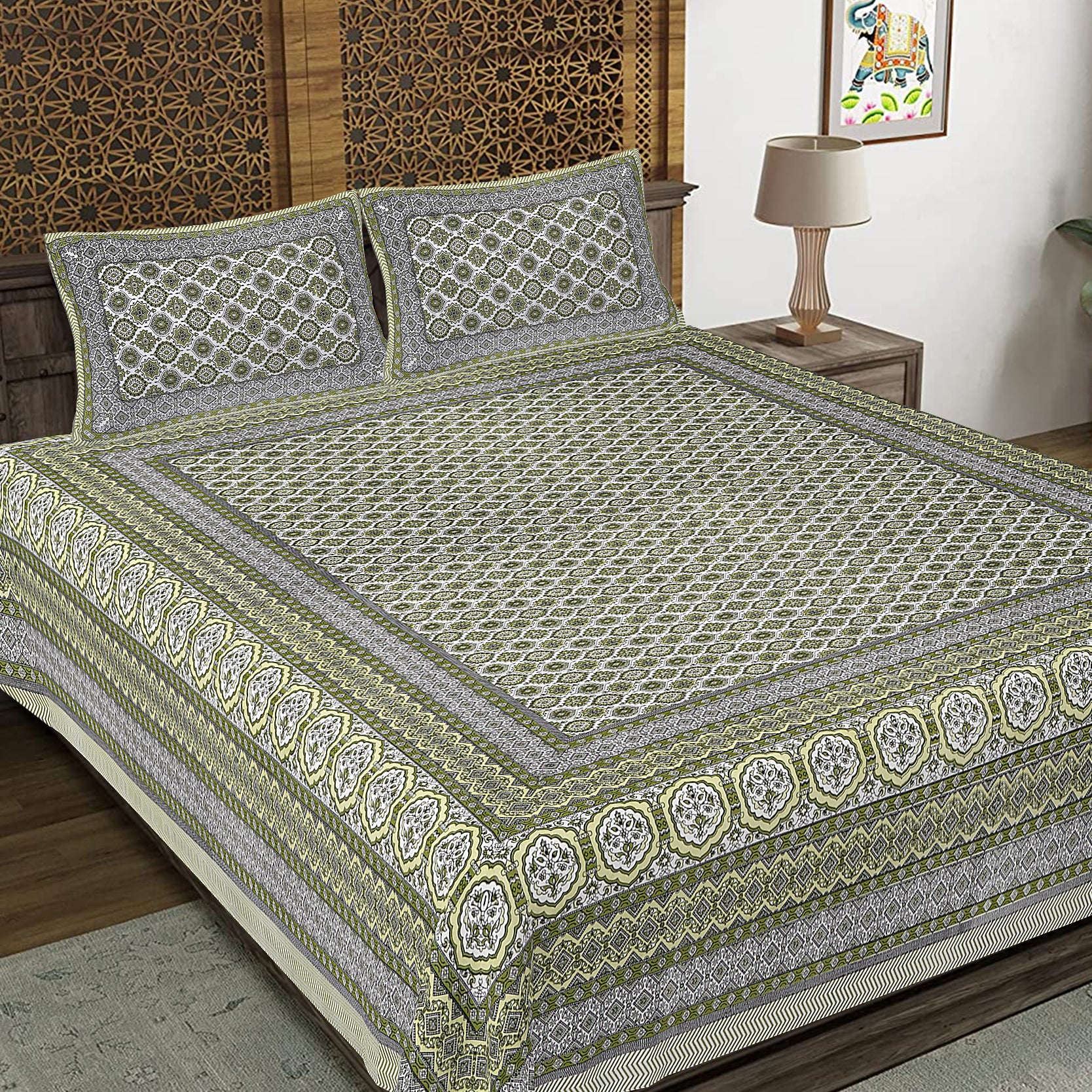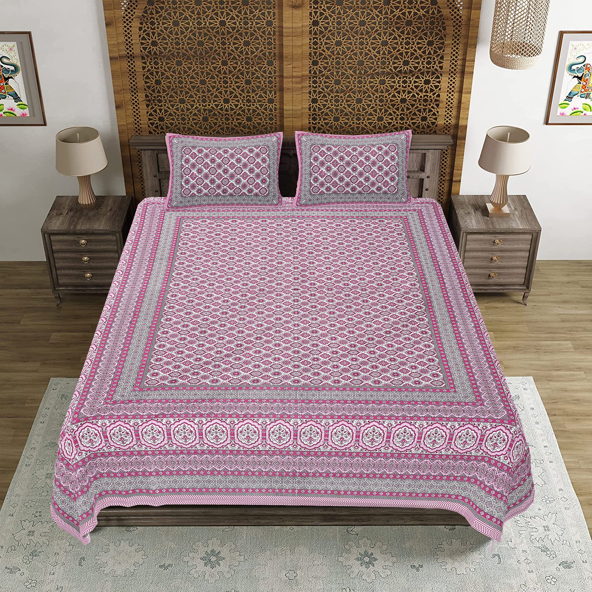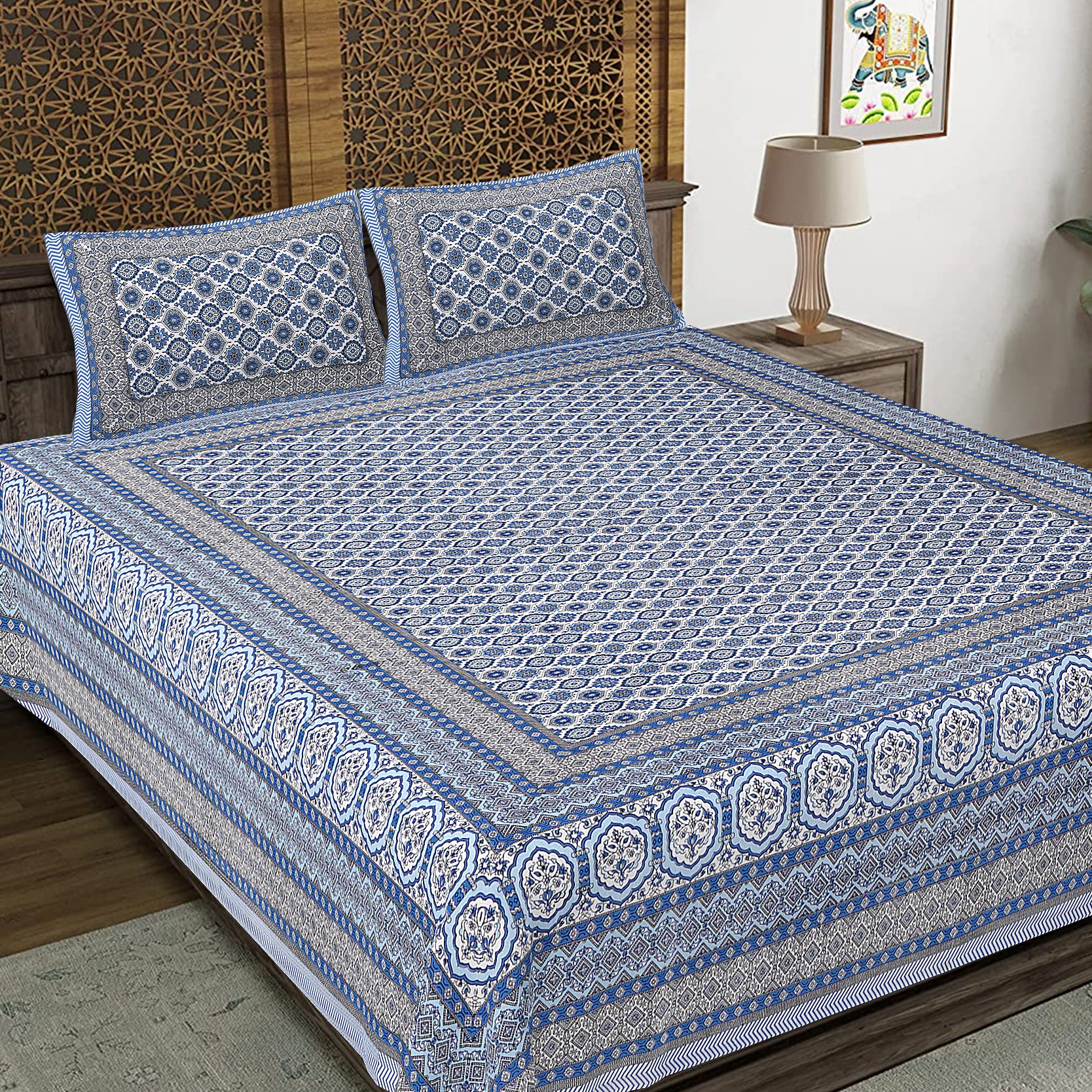 Jaipuri Bedsheet 100% Cotton Rajasthani Traditional Super King Size Bedsheet with 2 Pillow Cover 100*108