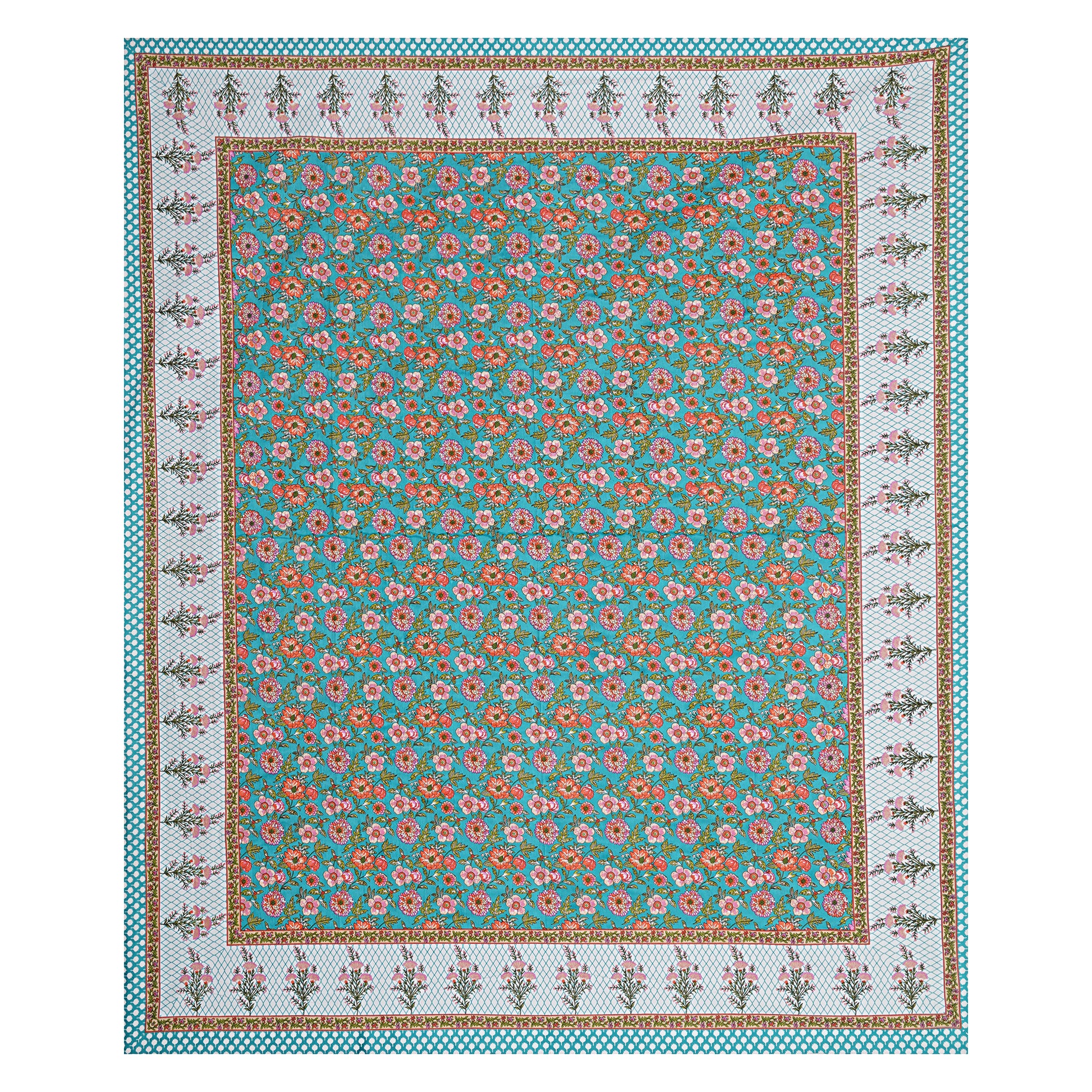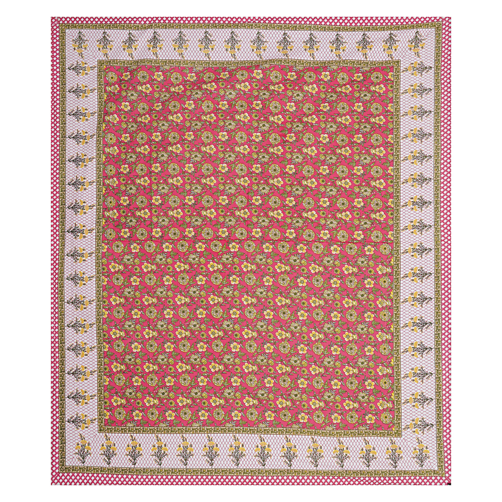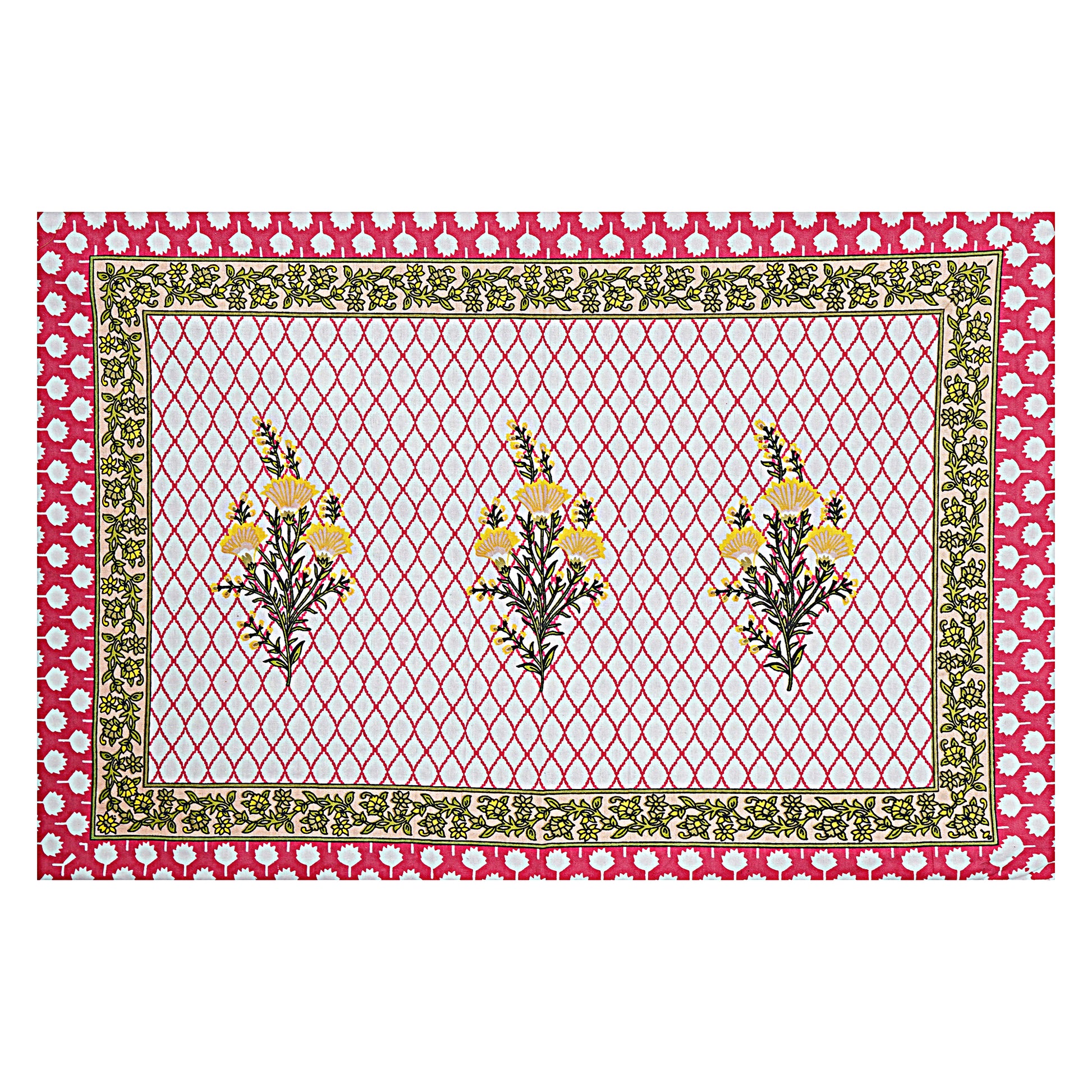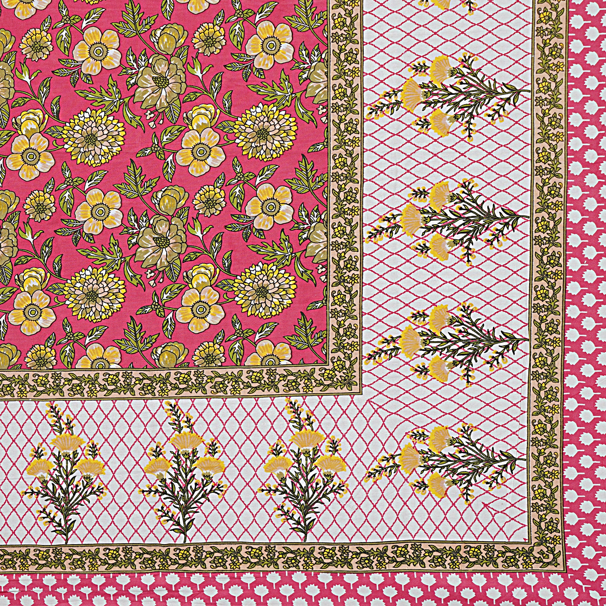 Jaipuri Bedsheet 100% Cotton Rajasthani Traditional Super King Size Bedsheet with 2 Pillow Cover 100*108