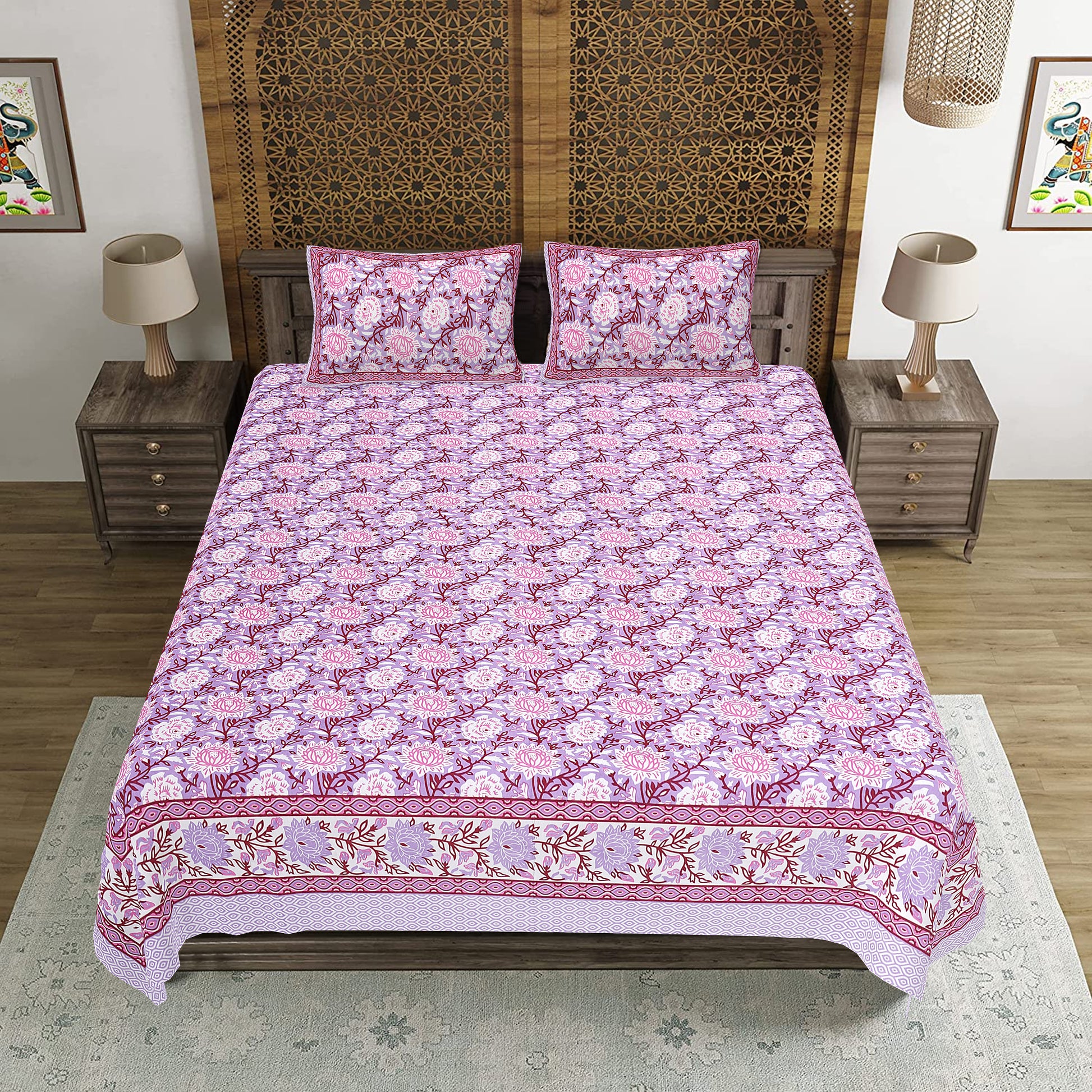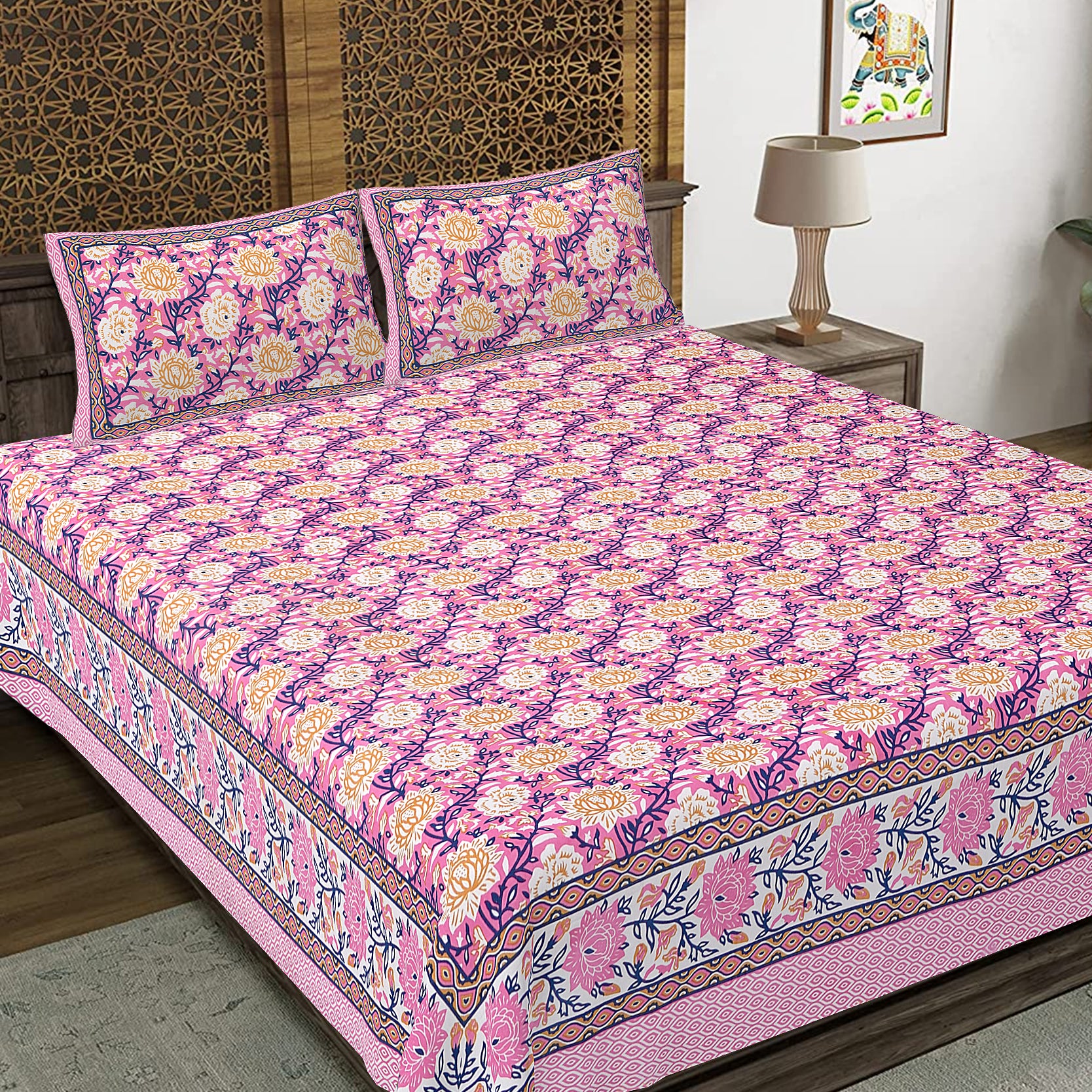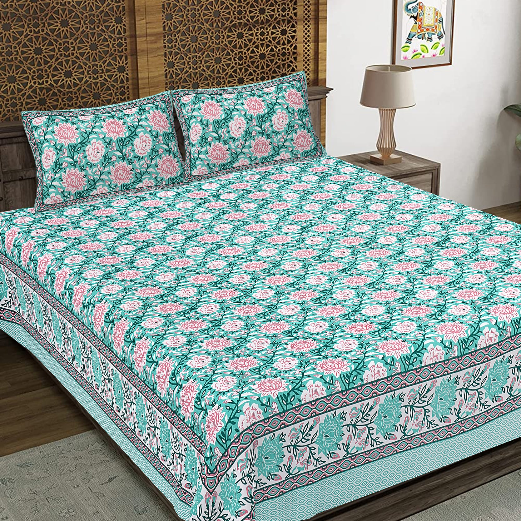 Jaipuri Bedsheet 100% Cotton Rajasthani Traditional Super King Size Bedsheet with 2 Pillow Cover 100*108