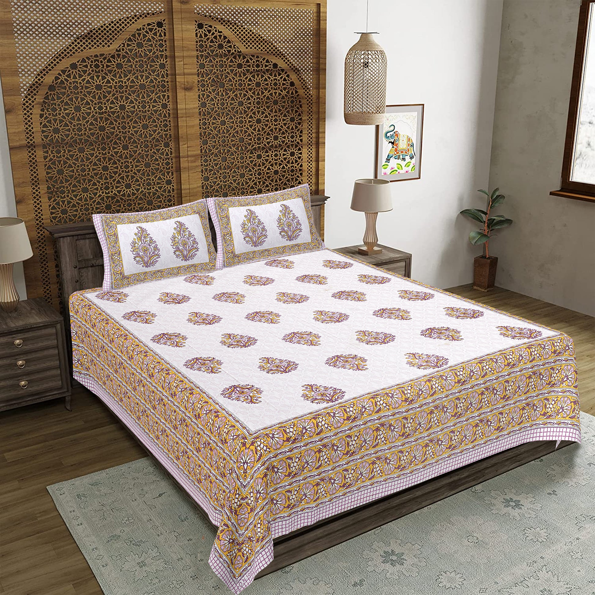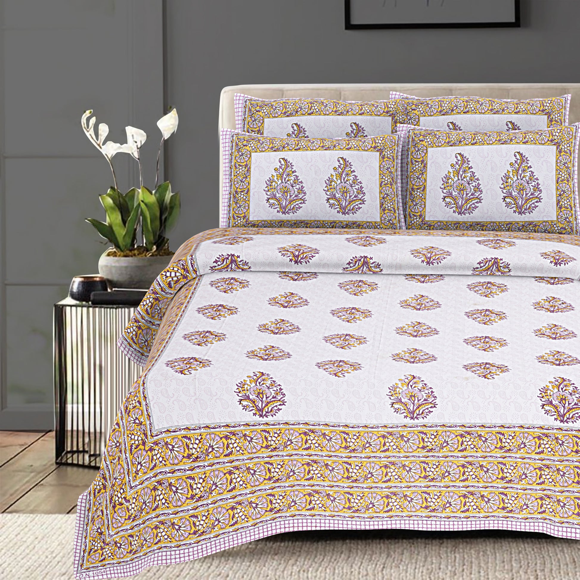 100% Cotton King Size Bedsheet with 2 Pillow Cover