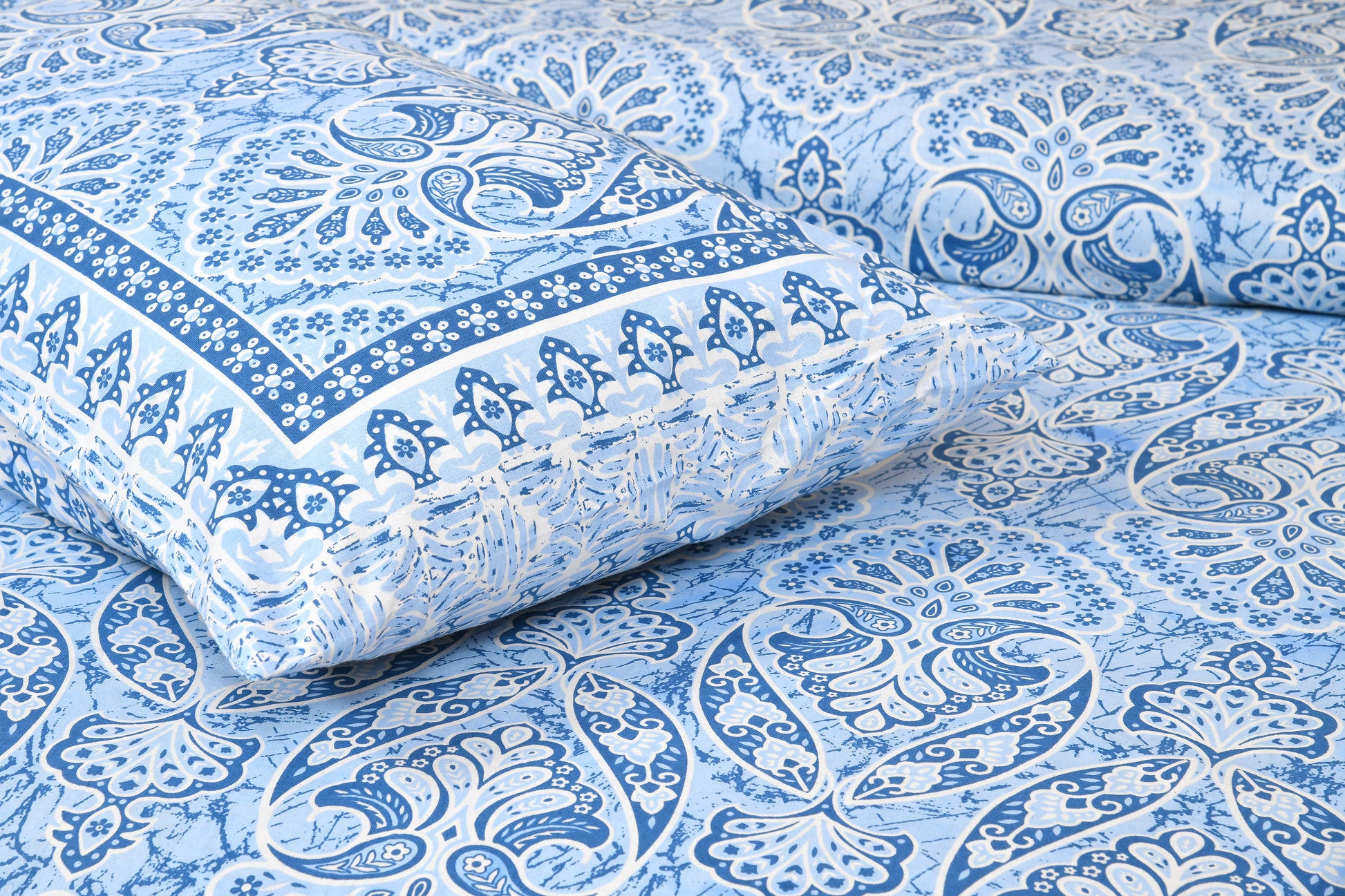 Jaipuri 100% Cotton Double Size Bedsheet ( Sky-Blue 280 TC)