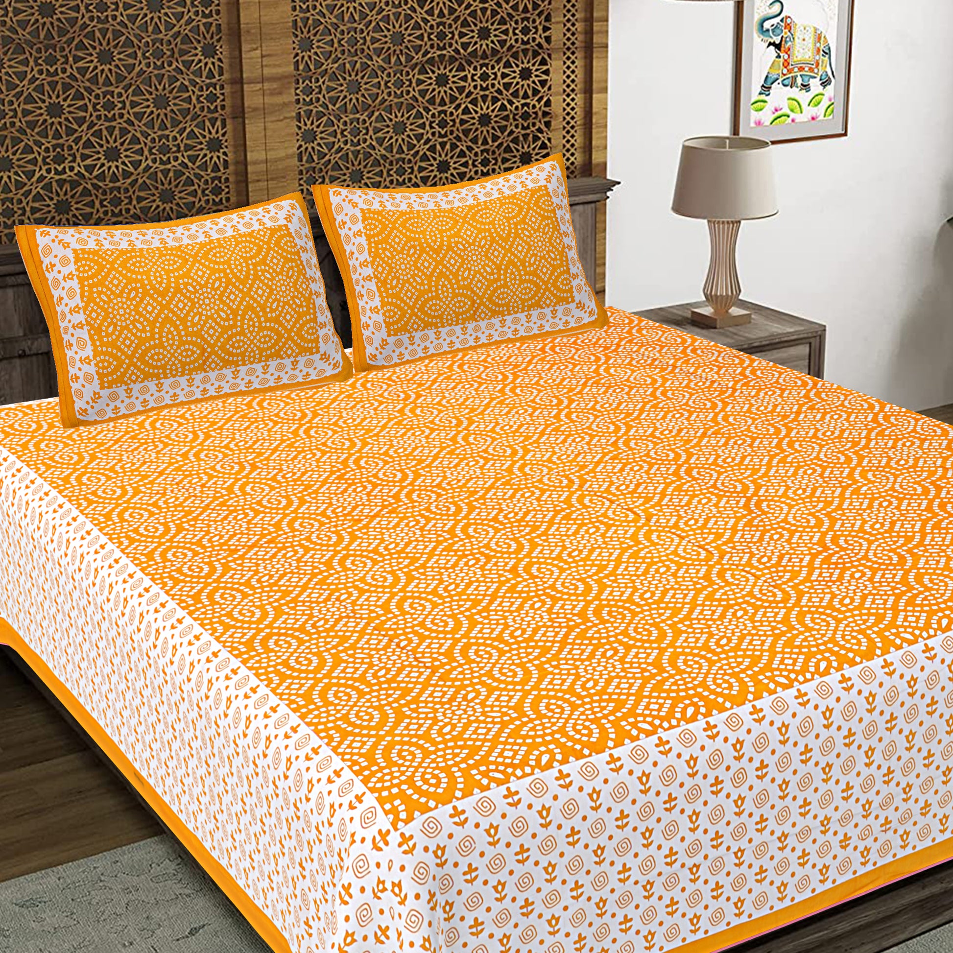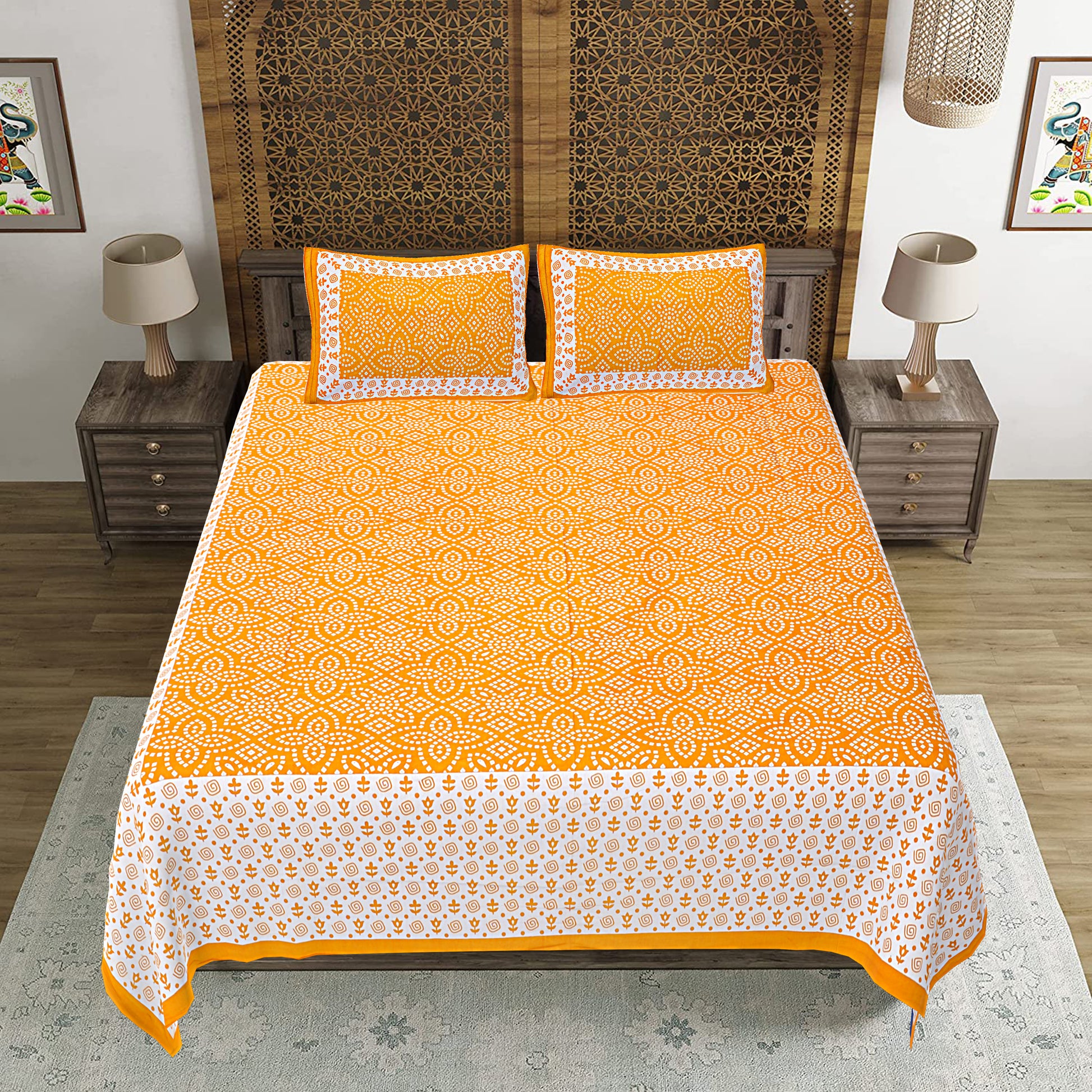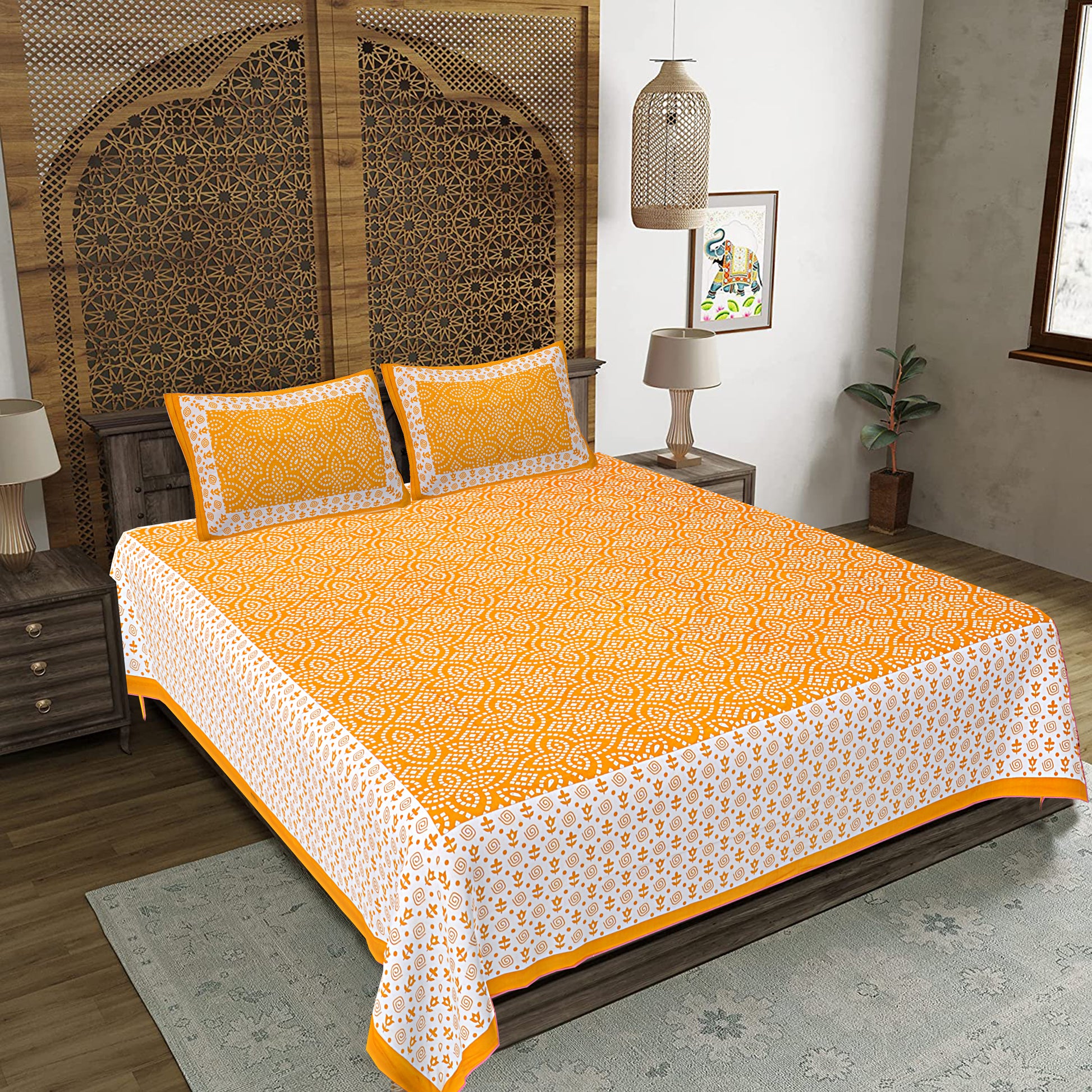 Jaipuri Bedsheet 100% Cotton Rajasthani Traditional Super King Size Bedsheet with 2 Pillow Cover 100*108