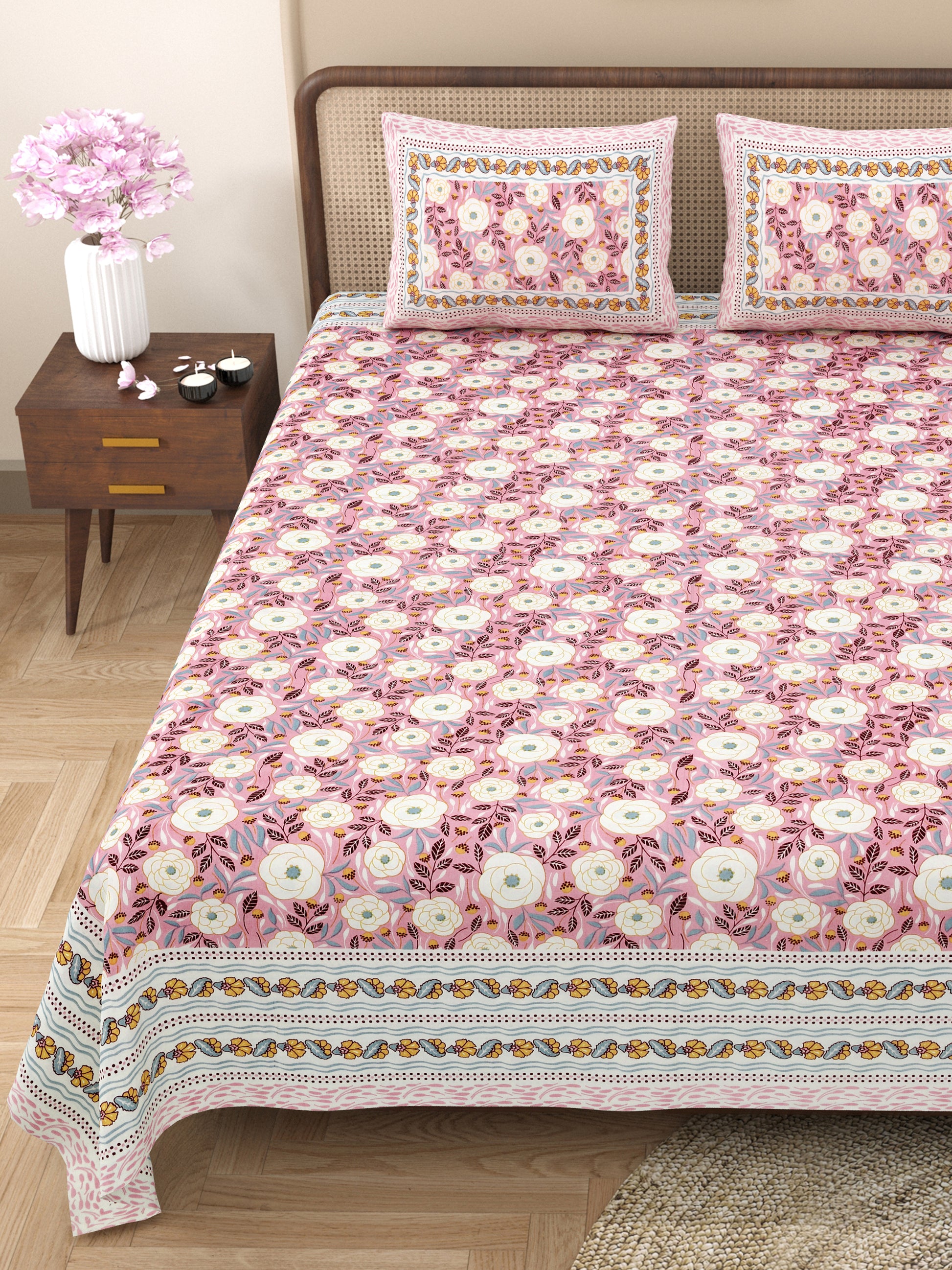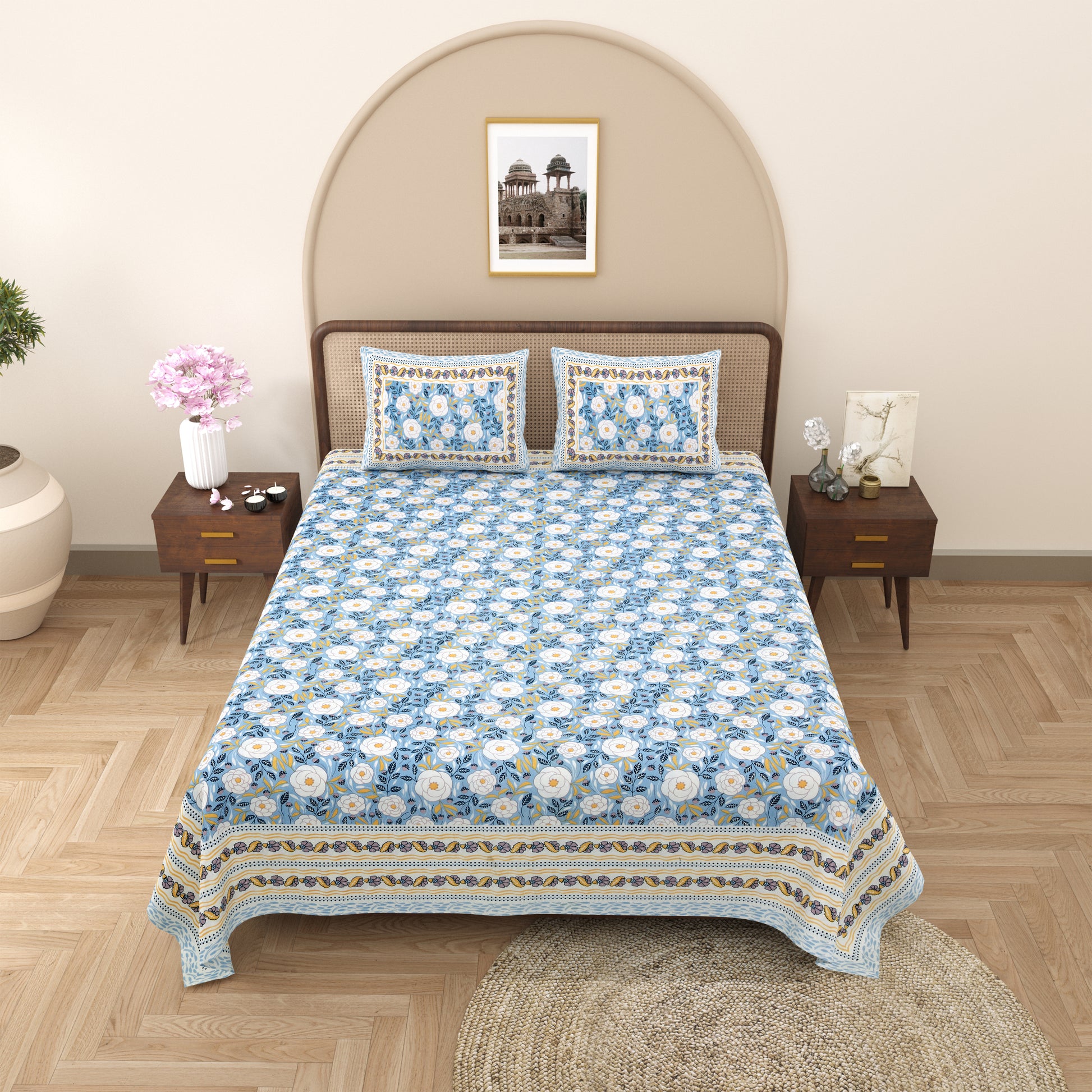 100% Cotton King Size Bedsheet with 2 Pillow Cover