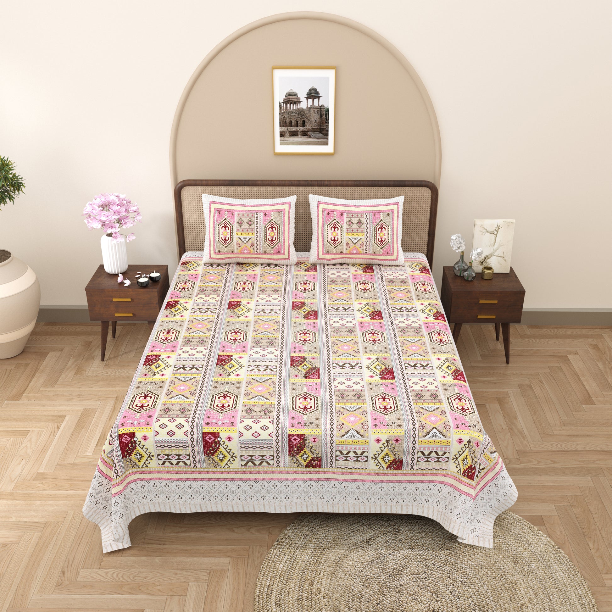 100% Cotton King Size Bedsheet with 2 Pillow Cover Set
