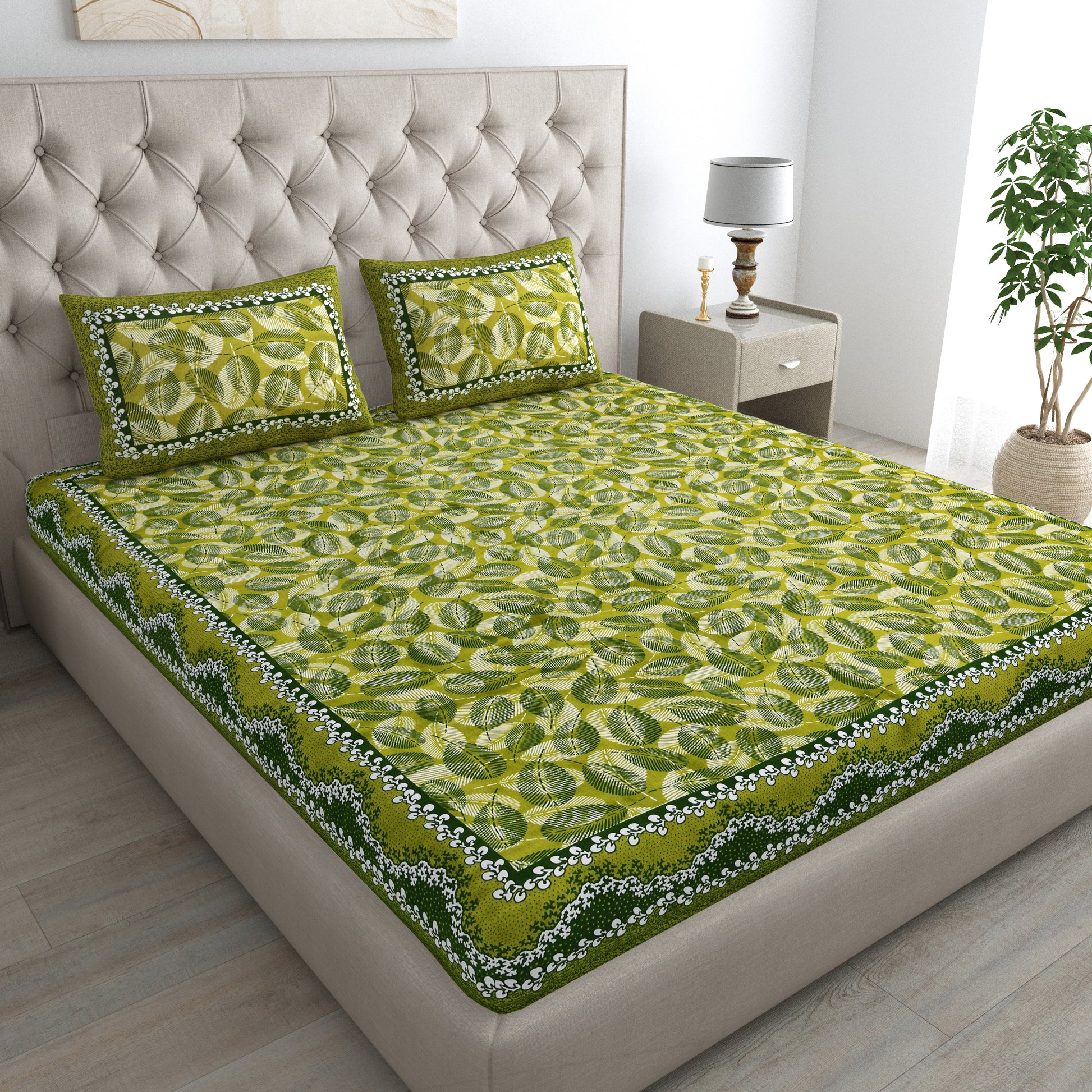Royal Leaf Bedsheet 100% Cotton Queen Size Bedsheet With 2 Pillow Cover Set