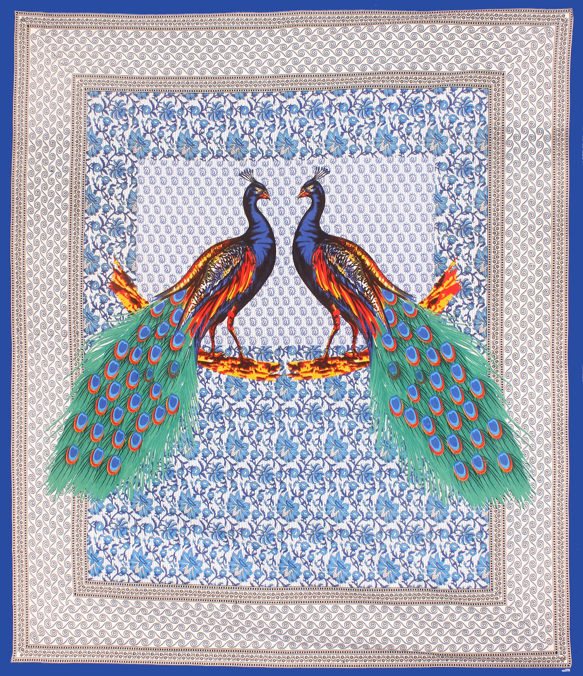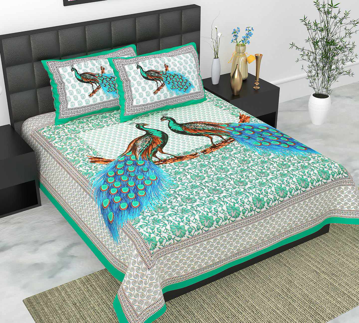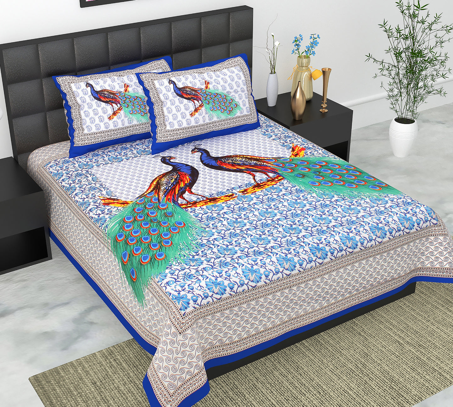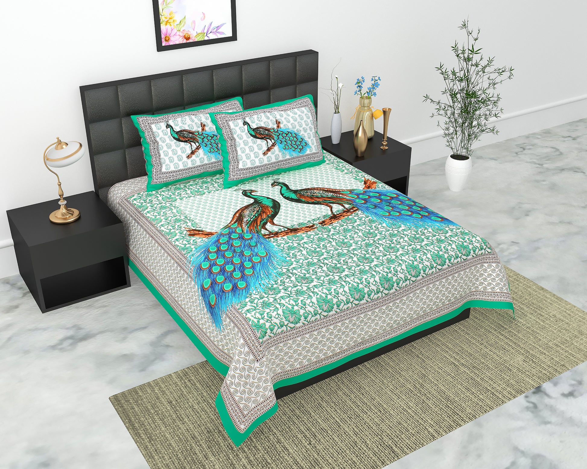 Jaipuri 100% Cotton Peacock Print Double Size Bedsheet ( 280 TC )