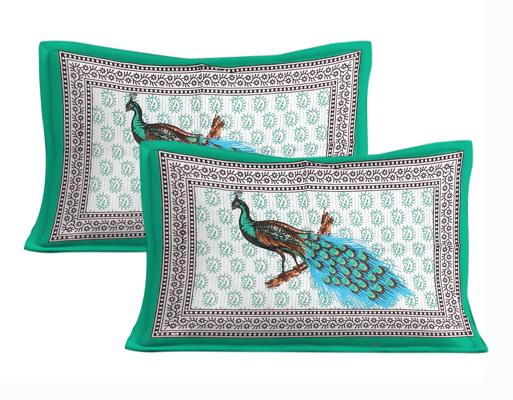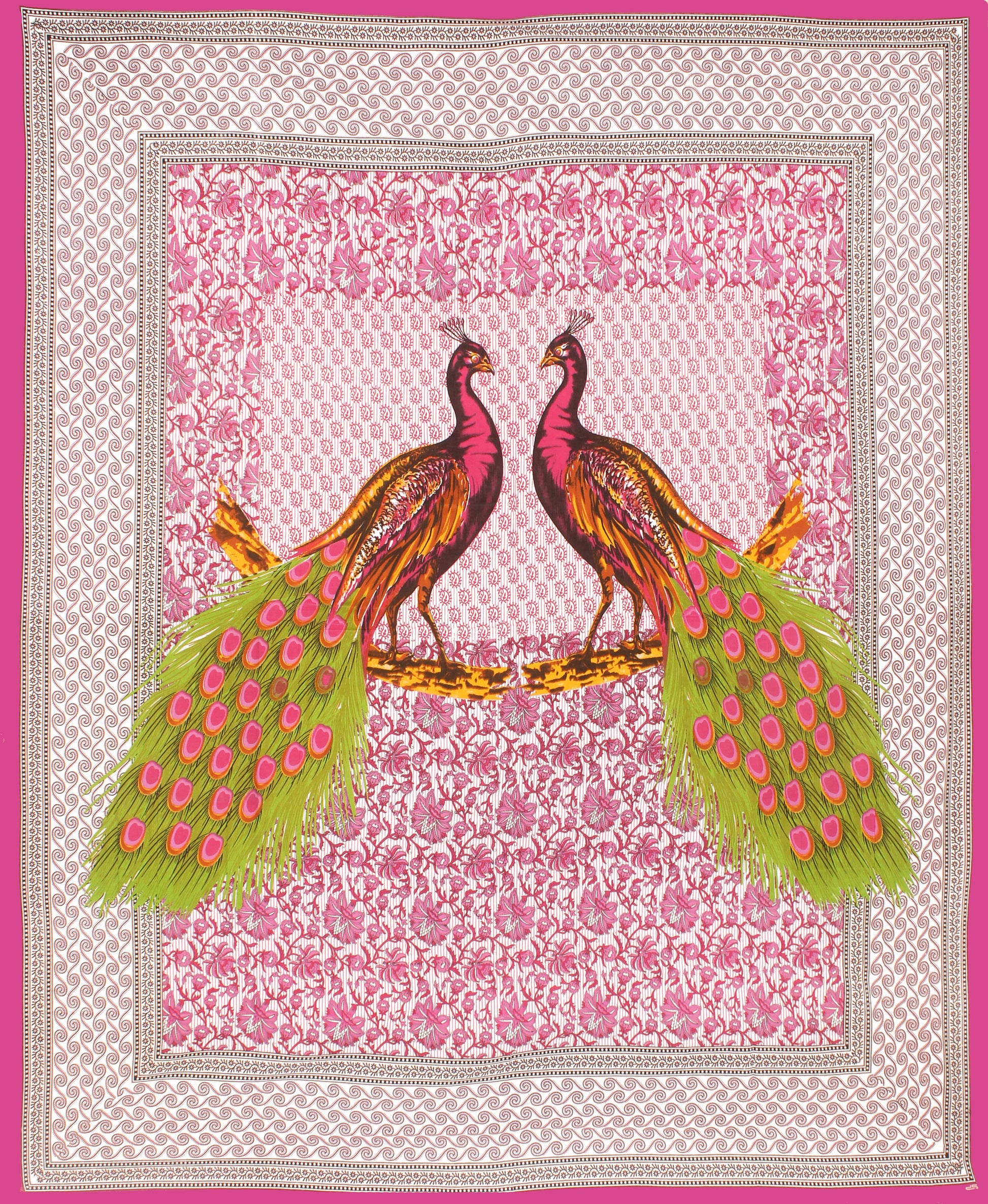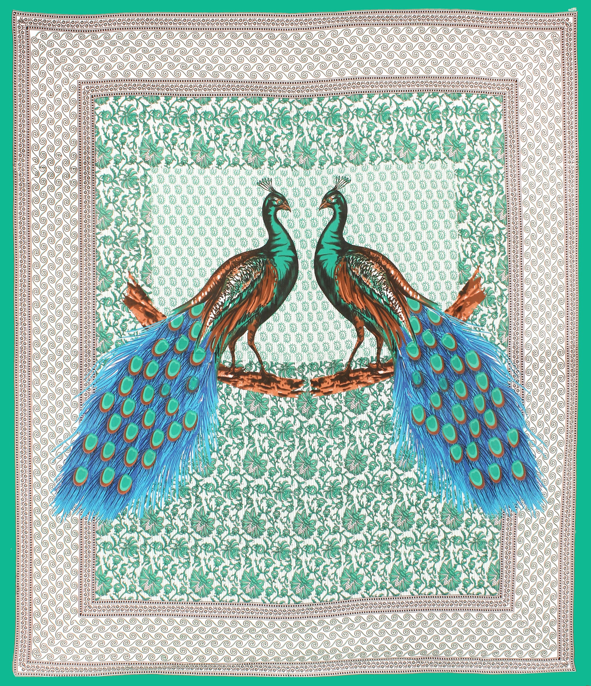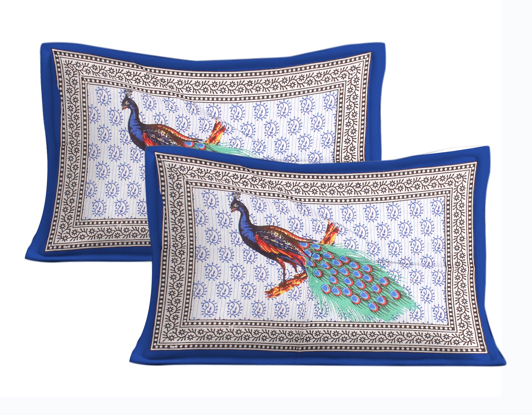 Jaipuri 100% Cotton Peacock Print Double Size Bedsheet ( 280 TC )