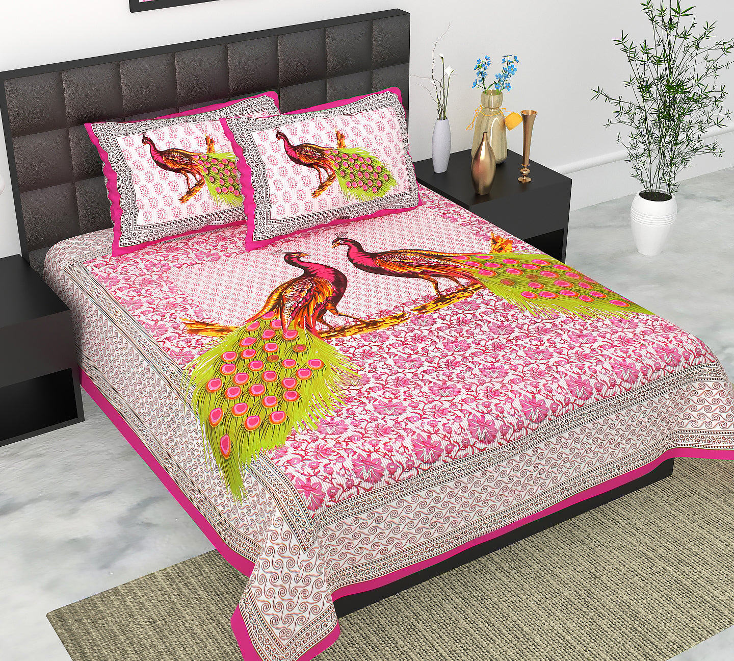 - Dress your bed in style with the versatile and attractive range of Exotica Double bedsheets from Super Deals For. The Jaipuri-printed bed sheets feature traditional-themed floral patterns in lively hues. Also, the 100 percent cotton fabric ensures skin-friendliness, easy washability and color-fastness. The world has known fewer other pleasures to match the pampering comfort of a welcoming bed at home. A fine fusion of both comfort and design- this vibrant and ethnic range of bed sheets is all you need for a restful sleep this summer. The bedsheet cloth is stitched at two ends giving you freedom to use the way you want, a specialty of Jaipuri Bedsheets. Wash